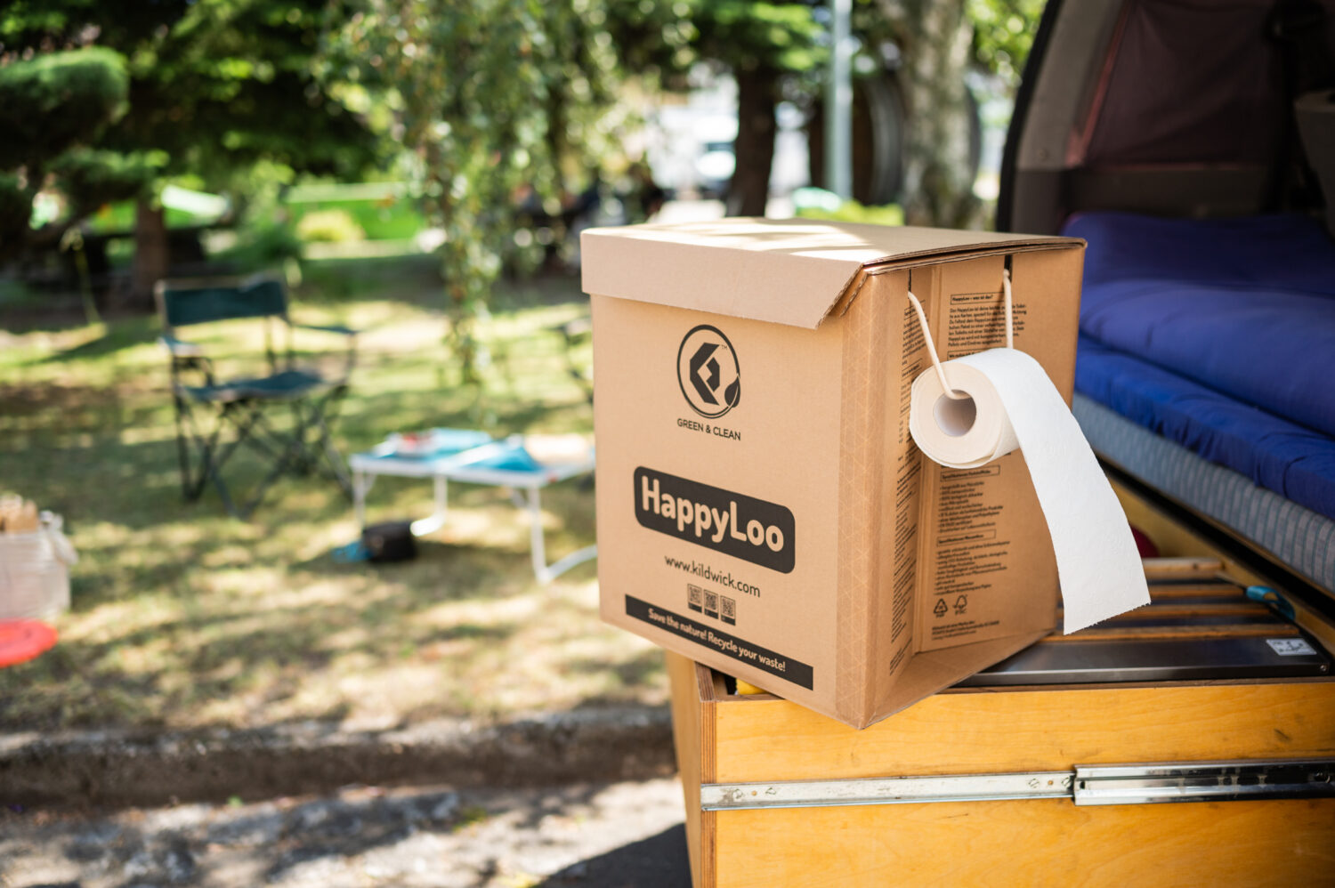 Du hast absolut keinen Platz für eine Campingtoilette, möchtest aber trotzdem königlich thronen, ohne deine Hinterlassenschaften in der Umwelt zu vergraben? Auch dafür hat Kildwick eine Lösung: Unser HappyLoo ist eine praktische, faltbare Komposttoilette aus Pappe, die viel langlebiger und robuster ist, als sie auf den ersten Blick aussieht.