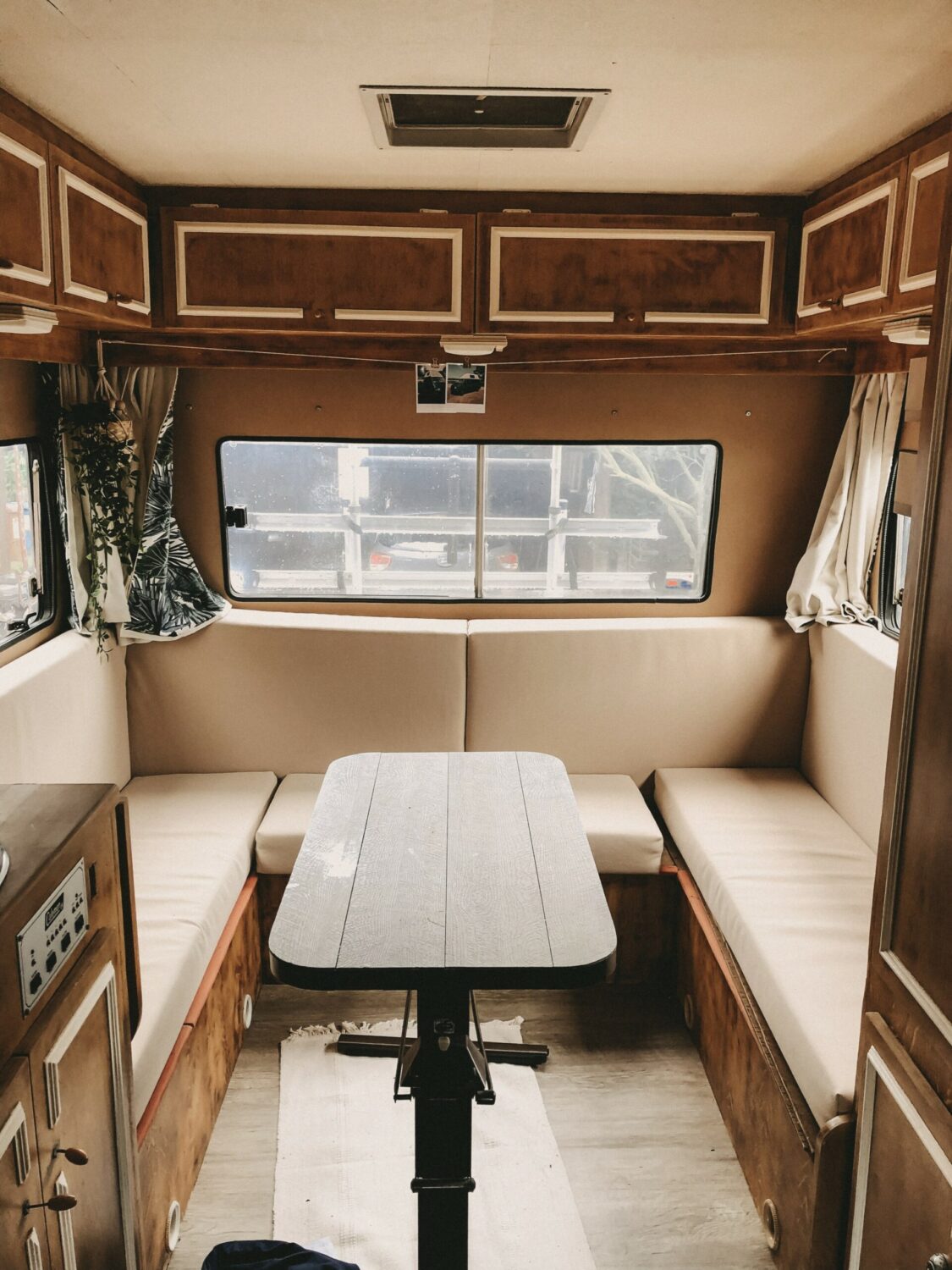 Wir haben den Camper im Mai 2019 gekauft. Da es gelb rot und orange gestrichen war, haben wir uns ein Design Konzept erarbeitet. So wie der Ausbau war, gefiel er uns aber sehr! Wir wollten ihn sehr natürlich gestalten mit viel Holz, pflanzen und grün und Beige tönen. Wir haben eine Dusche und eine Trockentrenntoilette. Leider hatten wir nach kurzer Zeit einen Motorschaden, aber da wir einen Plan verfolgten gaben wir alles um den Motor wieder zum laufen zu bekommen. Denn im Mai 2020 sind wir in den Camper gezogen und wollen die Welt entdecken. Mal sehen wann Corona uns fahren lässt.