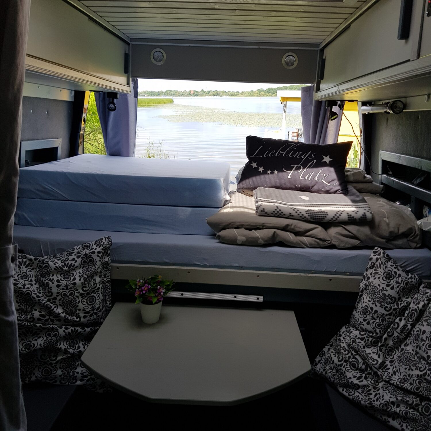 Als die Welt noch "normal" war fingen wir an unseren neuen Campervan zu bauen und haben ihn unter "Corona"-Bedingungen fertig gestellt. Unseren Ausbau in 100 Tagen zum DIY Campervan kann man gern unter https://skablogg.com/diy-campervanausbau/ nachlesen. Soweit alles alleine realisiert bis auf den Einbau der Fenster und der Dachluke, weil wir von Wasserschäden genug hatten. Allrad war uns wichtig sowie eine entsprechende Reisegeschwindigkeit für die noch kurzen Urlaube. Für eine richtige Dusche war kein Platz mehr, aber wir haben eine Außendusche. Das Raumkonzept ist nach unseren Anforderungen entstanden. Großes Bett mit einer Fläche von ca. 195x175 cm und separater Dinette, auf Drehkonsolen haben wir nämlich wenig Lust. Gerne kochen wir in unserer "open view kitchen" oder genehmigen uns ein kühles Bier aus der Kühlbox, die man von außen erreicht. Eine TTT ist natürlich auch mit an Bord.