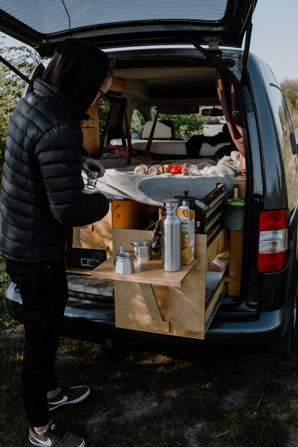 Die Parkplatzsuche in Hamburg und unser Budget hat damals kein größeres Auto zugelassen, als Alternative kamen wir dann auf den Caddy. Wir sind dadurch super flexibel und können ihn sowohl im Alltag als auch zum Campen nutzen.