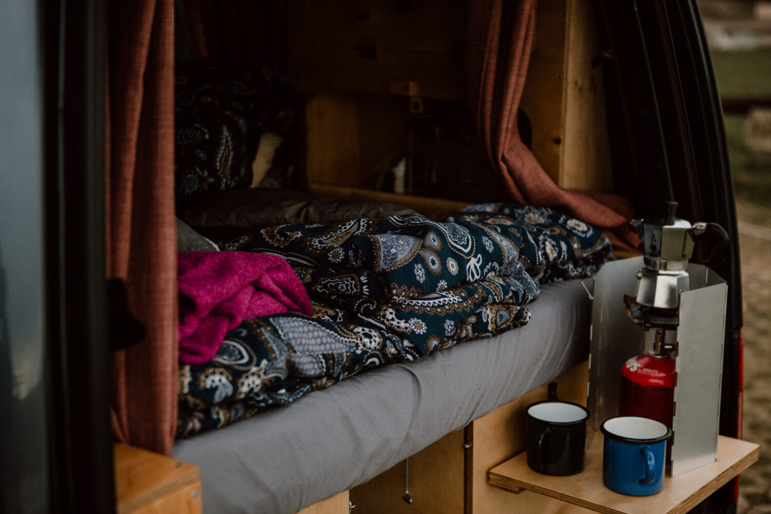 Ansonsten hat der Caddy alles was man zum einfachen Campen braucht und mit ein bisschen Deko wird er dann auch so richtig gemütlich :)