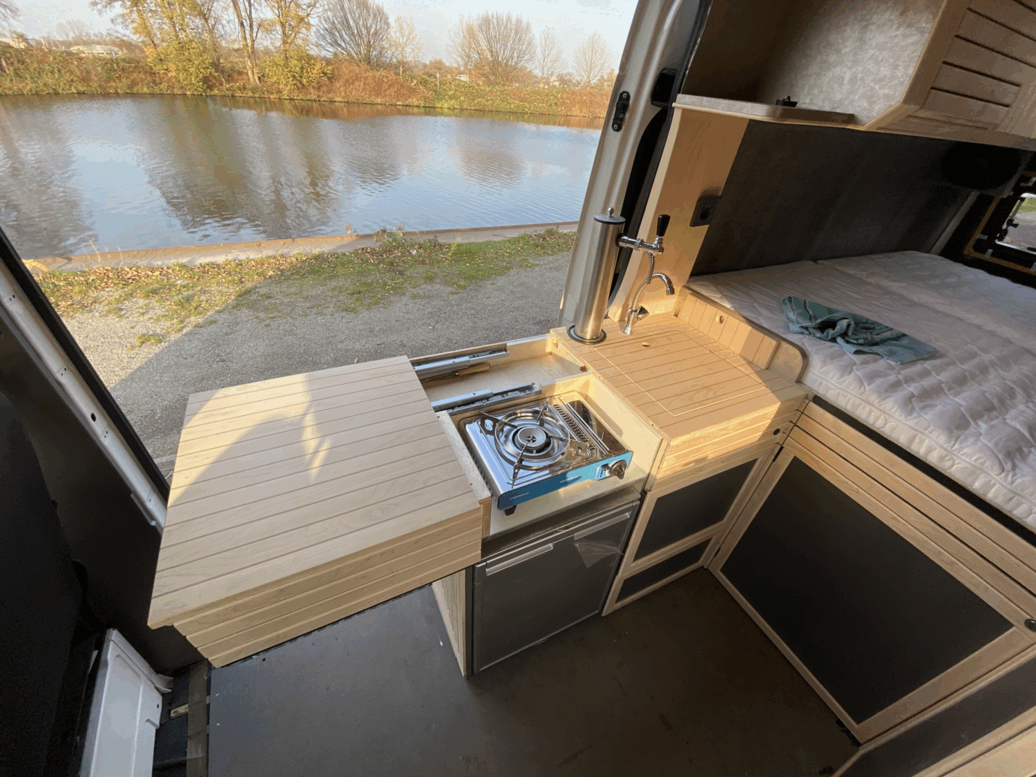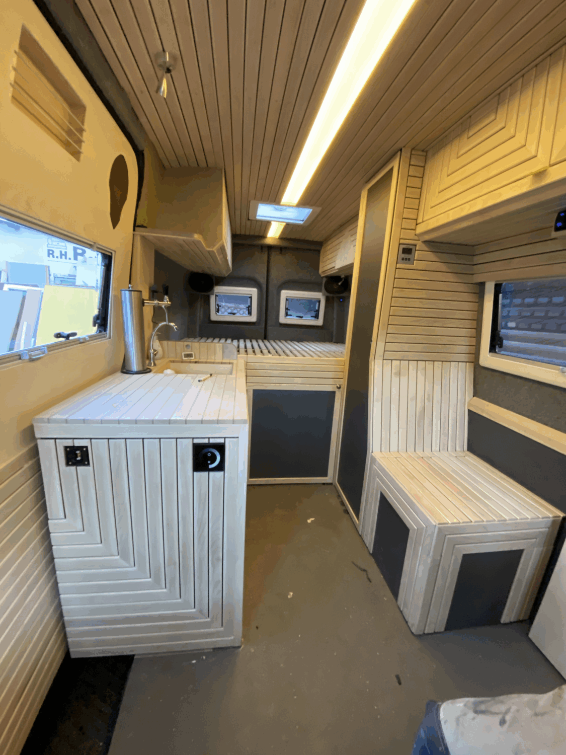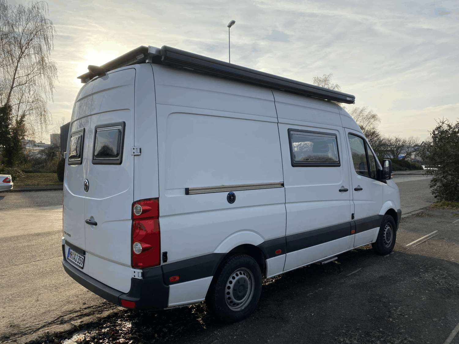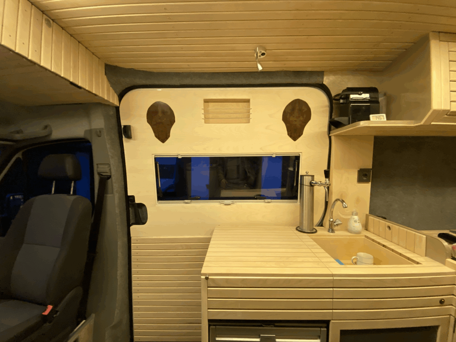 Hallo Ich habe mit einem Freund den Crafter im Sommer 2020 gekauft und sofort angefangen ihn auszubauen. Nach 5 Monaten bin ich nun endlich weitestgehend fertig. Der Innenausbau besteht aus Leichtbauplatten mit Ahorn Massivholz verkleidet. Es sind insgesamt knapp 250m Kabelverlegt worden. Wir haben eine Dachterrasse mit 200W Solar. Einen Lade Booster und 1500W Wechselrichter mit 100Ah Lithiumbatterie. Das Bett ist dank der Karosserieverbreiterung 1,94x1,6m und quer eingebaut, es lässt sich noch zu einem Sofa umklappen, somit kann man wahlweise ins innere schauen oder auch nachdraußen. Wir haben 80L Frischwasser an Bort und 70L grau Wasser. Wir haben noch eine Zapfanlage mit Duchlaufkühler verbaut.