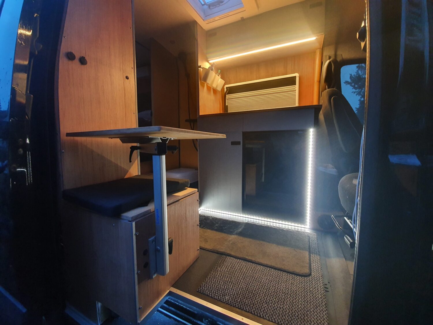 Wir haben Ende Februar 2020 mit dem Ausbau (Isolierung) begonnen, dann war unser Sprinter von März bis Mai beim Allradumbau.(Coronabedingt verzögert..) Seit Mitte Dezember 2020 sind wir mit dem Ausbau fertig.. Obwohl sagt man nicht "Man ist nie fertig!?" :) Unser Van ist autark und Geländetauglich, verfügt auch über eine "Innendusche" ;) und hat alles was man auf einer großen Reise oder für das Fulltime-Vanlife braucht.