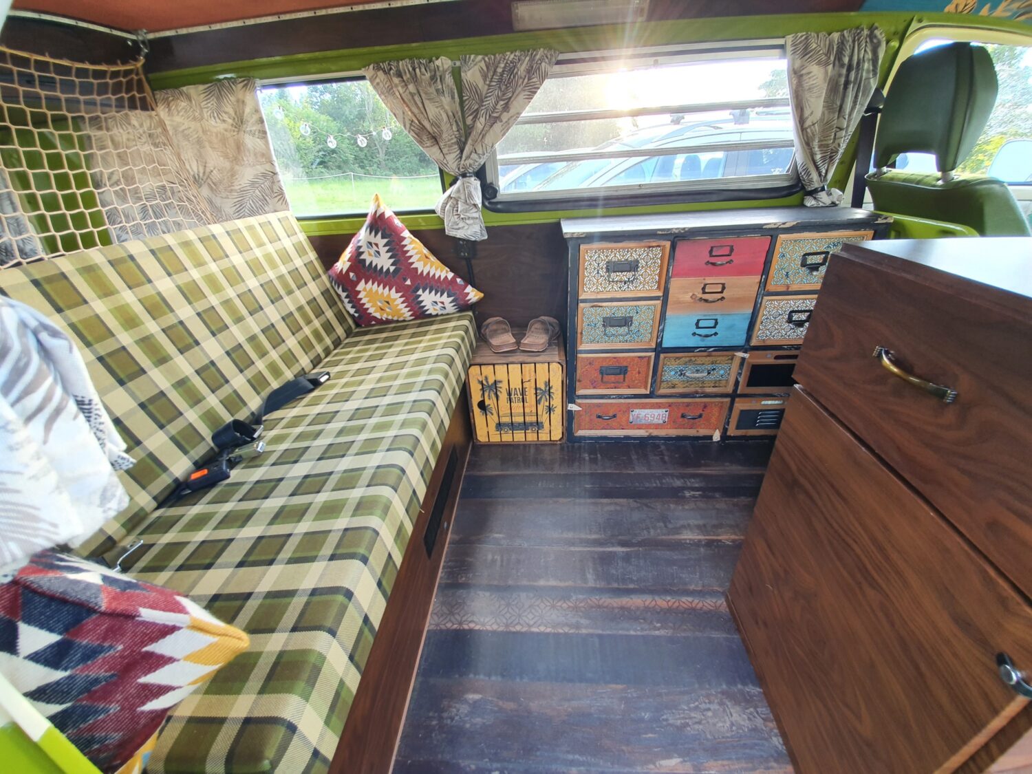 Ein Bulli war schon immer ein Traum. Er ist minimalistisch ausgestattet, Kühlschrank, strom und Bett. Mehr braucht man nicht. Geplant sind diverse Roadtrips zunächst innerhalb Deutschlands. Jeden Tag woanders stehen und einfach fahren. Im Sommer ist der Bulli mein Alltagsauto.