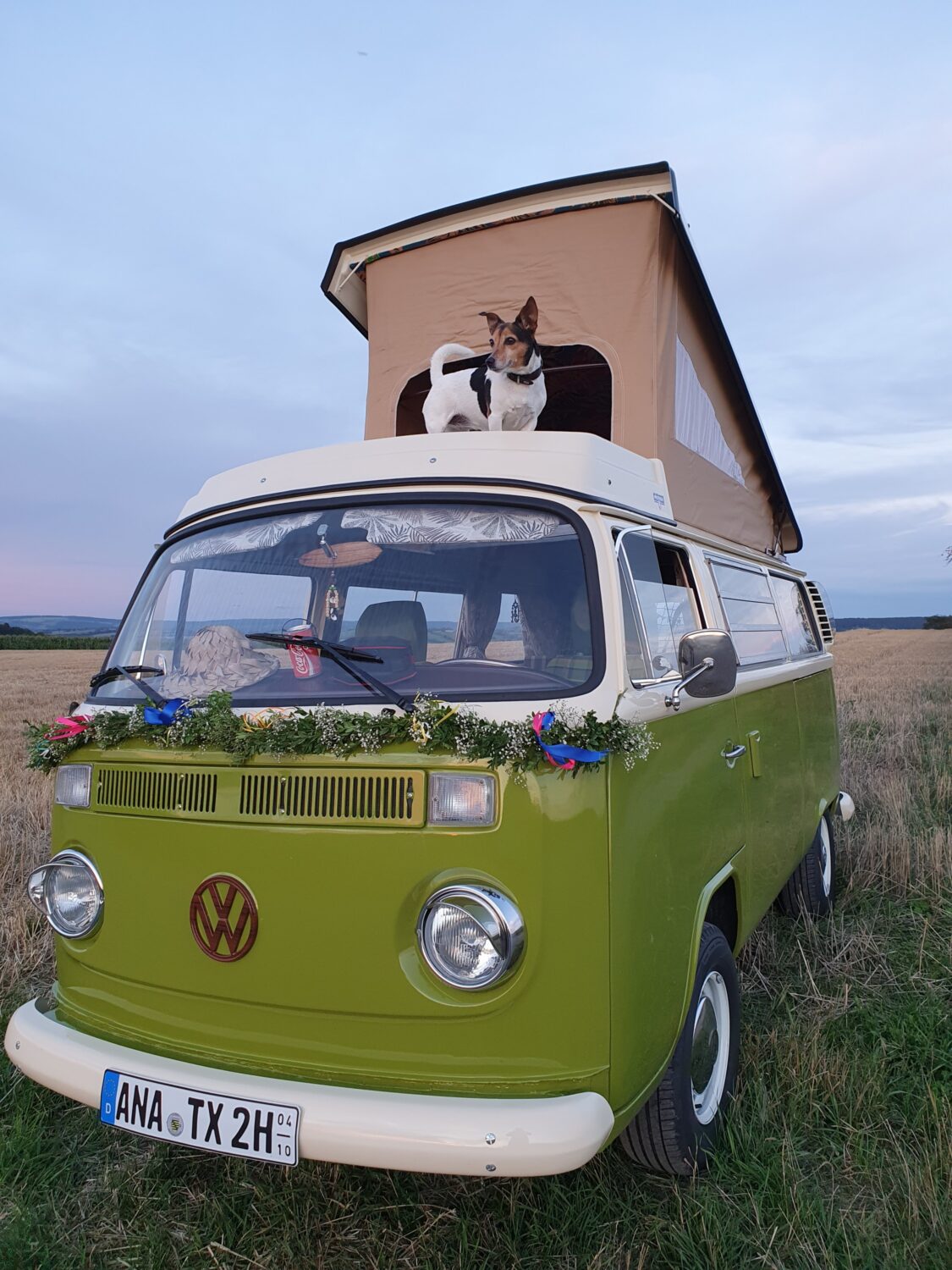 Die Komplette Story zum Bulli gibts auf Instagram: t2advantoures Kurzform: Freddy ist ein VW T2b Westfalia mit Luftgekühlten ca 86 PS. Gekauft im Oktober 2019 in einem halbwegs akzeptablen Zustand. November 2019 bis Juli 2020 wurde Freddy komplett zerlegt. Danach wurde alles was nach Rost aussah oder Löcher hatte ersetzt. Komplette Technik wie Bremsleitung, Bremsen, Traggelenke, Federung, Stabis, Reifen neu. Freddy wurde in den Farben Taigagrün und Taxibeige lackiert. Anschließend komplett wieder aufgebaut,inkl neuer Bordelektrik, Möbel Auffrischung, Vinylboden, Dachzelt und Himmel neu, Armaturenbrett, Polster, Dichtungen... Gesamtkosten inkl. Kaufpreis ohne Eigenleistung und Arbeitskosten eingerechnet, ca 33.000€. Arbeitsstunden in Eigenleistung ca 800Std. Fremdleistung (Schweißer,Helfer, Lackierer ca 400 Std. Den Motor hat die Fa. Orratech komplett überholt, es ist ein Typ 1 Motor mit nunmehr 72 PS Motorleistung, der Rest kommt durch den Vintage Speed auspuff zustande (insgesamt ca 86 PS). Geplante Restarbeiten: Solar, Getriebe und Standheizung. Zusatzausstattung: Anhängerkupplung, Bordbatterie 100Ah, trible ladegerät, 1200 ST nvs Wechselrichter votronic, zusatzölkühler elektrisch, diverse Diebstahlsicherungen wie bearlock Wegfahrsperre, zusatzinstrumente öltemperatur drehzahl und öldruck, Bambusablage, rote koni stoßdämpfer, breite stahlfelgen vom t3 syncro, schaltknauf chuppa chups unikat, tanzende Cola Dose ;)