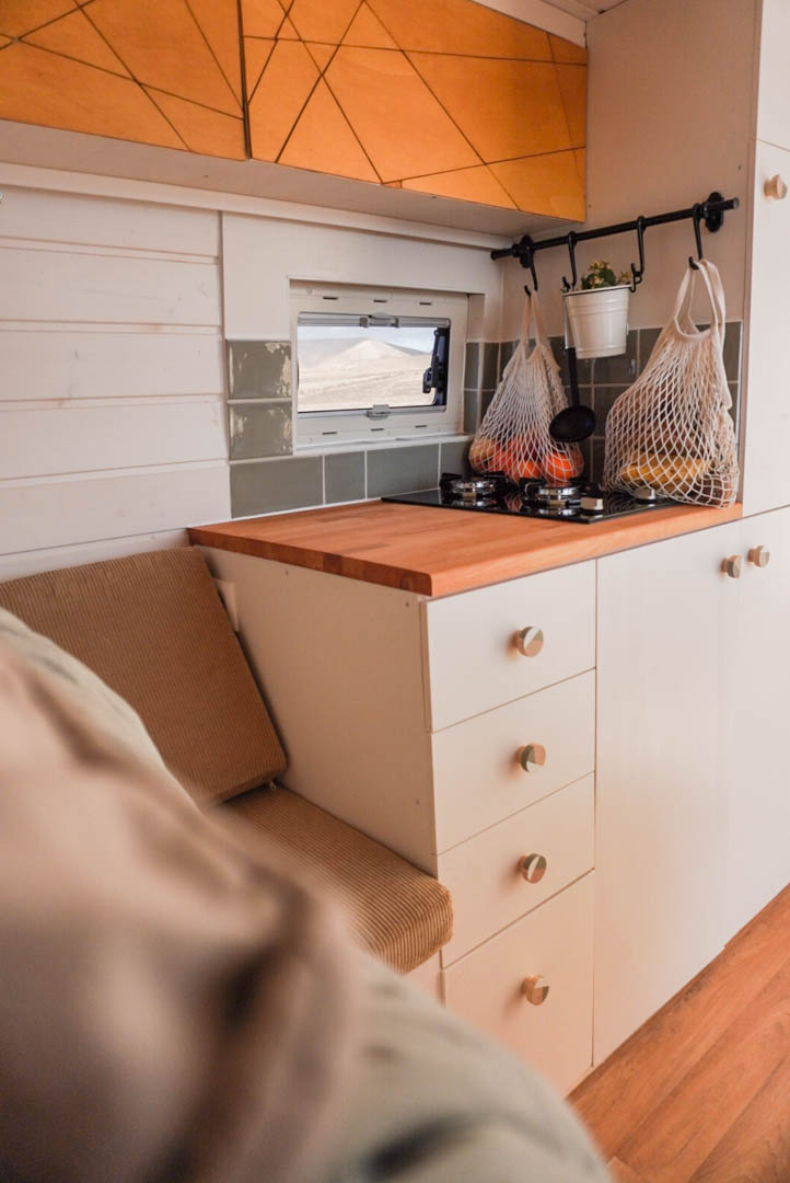 Wir haben Vollzeit 3 Monaten Carlo zu unserem Traum- Wohnmobil umgebaut. Am meisten gefällt uns die absolute Gemütlichkeit, unser großes Bett. Die selbst gebastelten Holzgriffe, sowie unsere schöne Küche und unsere selbst-gemachten Sitzpolster.