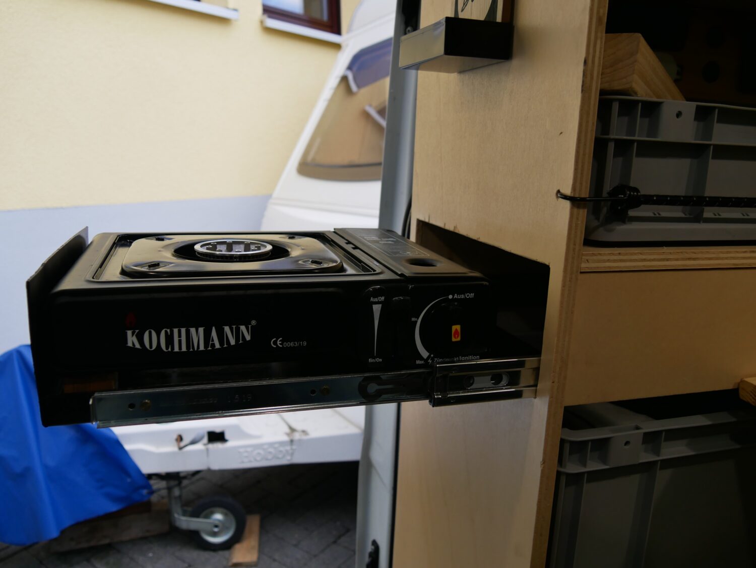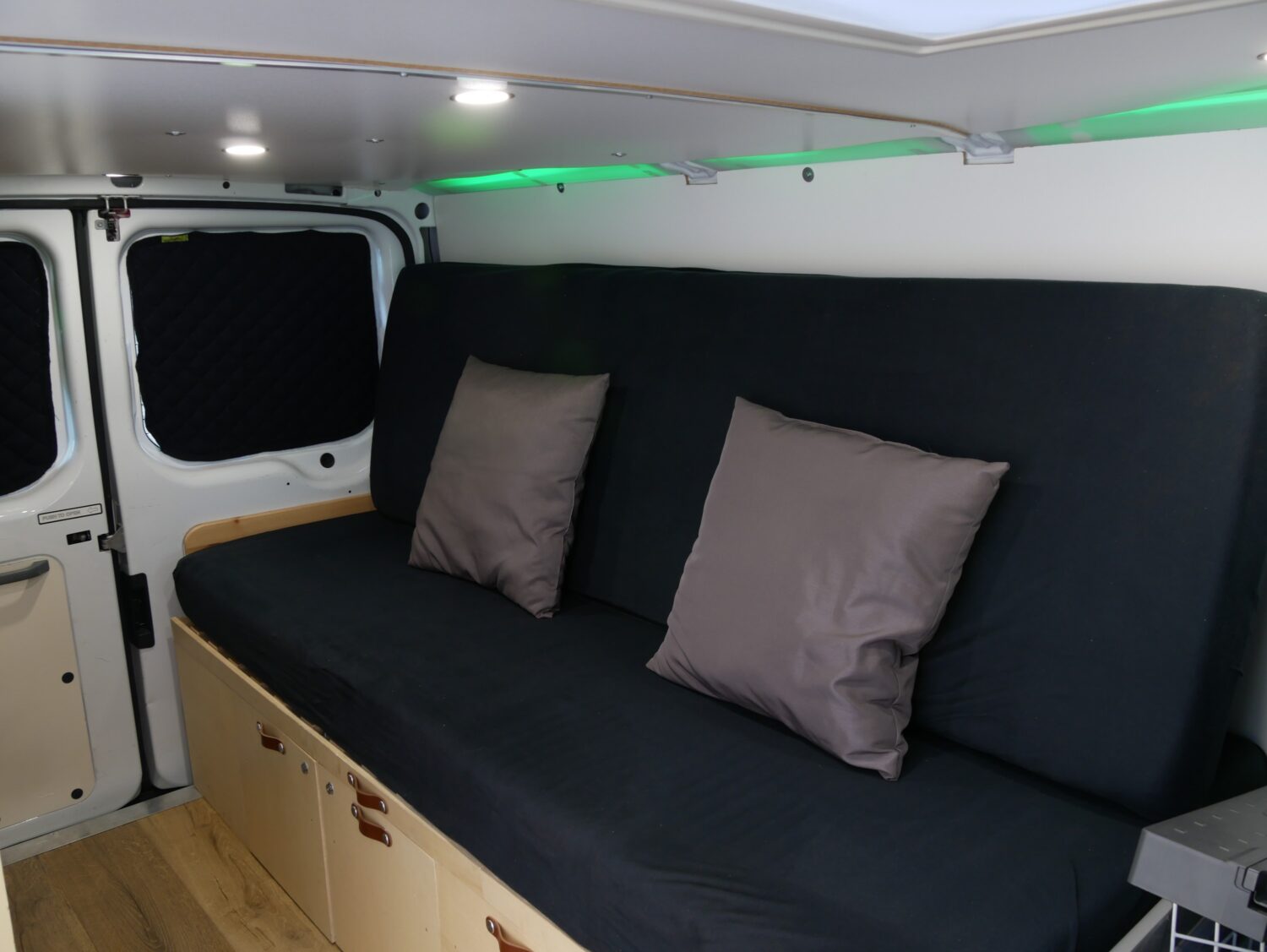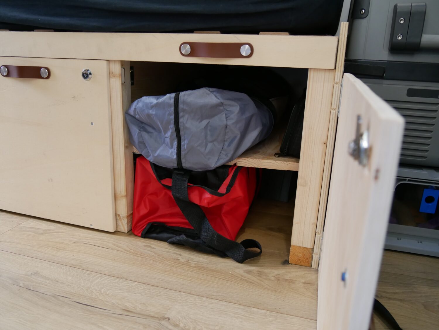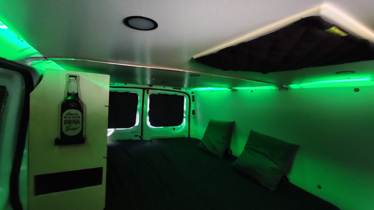Für den Ausbau habe ich ungefähr ein halbes Jahr gebraucht und habe immer abends nach der Arbeit oder an Wochenenden dran gearbeitet. Ich wollte alles möglichst simpel und einfach gestalten, sodass alles gut erreichbar ist und z.b. das Bett mit wenigen Handgriffen aufgebaut ist. Der Bus hat alles an Ausstattung, was man sich so vorstellen kann. Fließend Wasser gibt es nicht, mir reicht dafür ein 20l Wasserkanister.