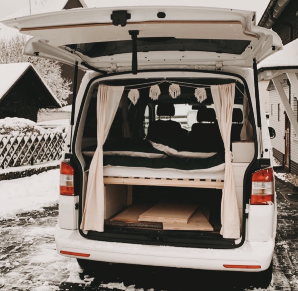 Bin seit September 2020 bis jetzt noch am ausbauen. Bisher habe ich: alles isoliert, Boden verlegt, Innenwände mit Wand-Paneelen verkleidet, ein ausziehbares Bett gebaut, Einspeisungssteckdose eingebaut und bin aktuell am Bau der Küche. Ich bin stolz darauf, dass ich das alles ohne Vorkenntnisse hauptsächlich alleine, neben meinem Vollzeitjob, bisher so gut meistere. :) Kann man ja auch mal sagen :D