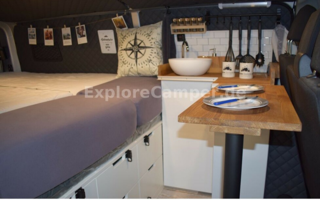 Ausbau Q1/2021 mit aluby,Armaflex, 1.6mx2m Bett, Küchenzeile mit Waschbecken und Kompressorkühbox, wechselrichter, fiamma f45s....und und ....