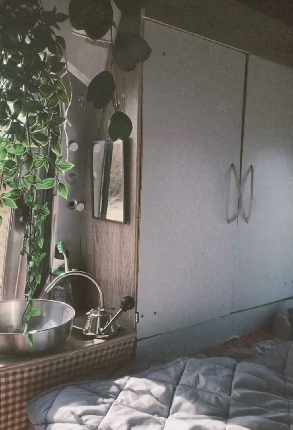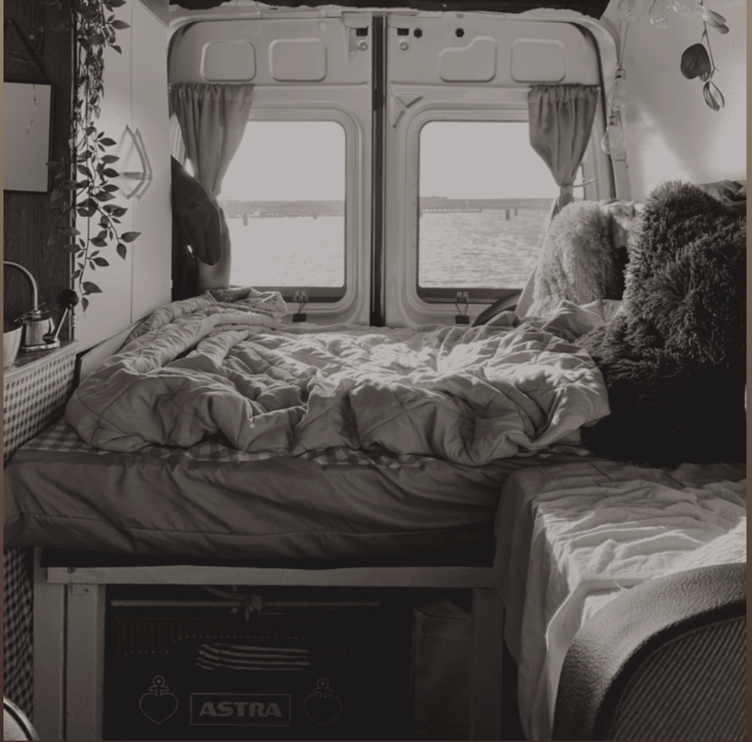Da Fridolin ziemlich klein ist, habe ich nicht so lange für den Ausbau gebraucht. Ich habe ihn jetzt zwei Jahre und hab in jeder Saison noch ein paar Sachen umgebaut und verbessert. Am Anfang hatte ich wirklich nur ein Bett zum Ausziehen. Mittlerweile habe ich auch ein Ecksofa, ein Waschbecken und einen Schrank. Kam zu glauben, dass ich ab dieser Saison auch mit Toilette und Außendusche unterwegs bin, um einigermaßen autark stehen zu können und unabhängig zu sein. Zu den Kosten kann ich deshalb auch nicht viel sagen, aber allzu teuer warâ≢s nicht.
