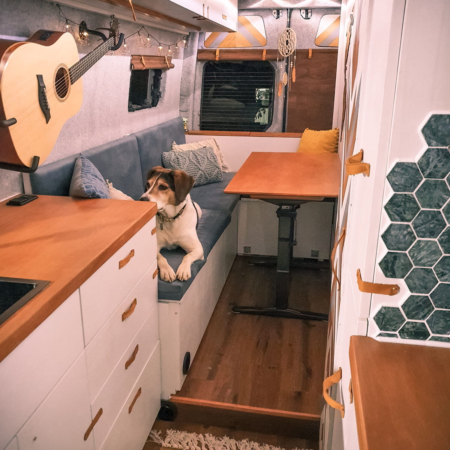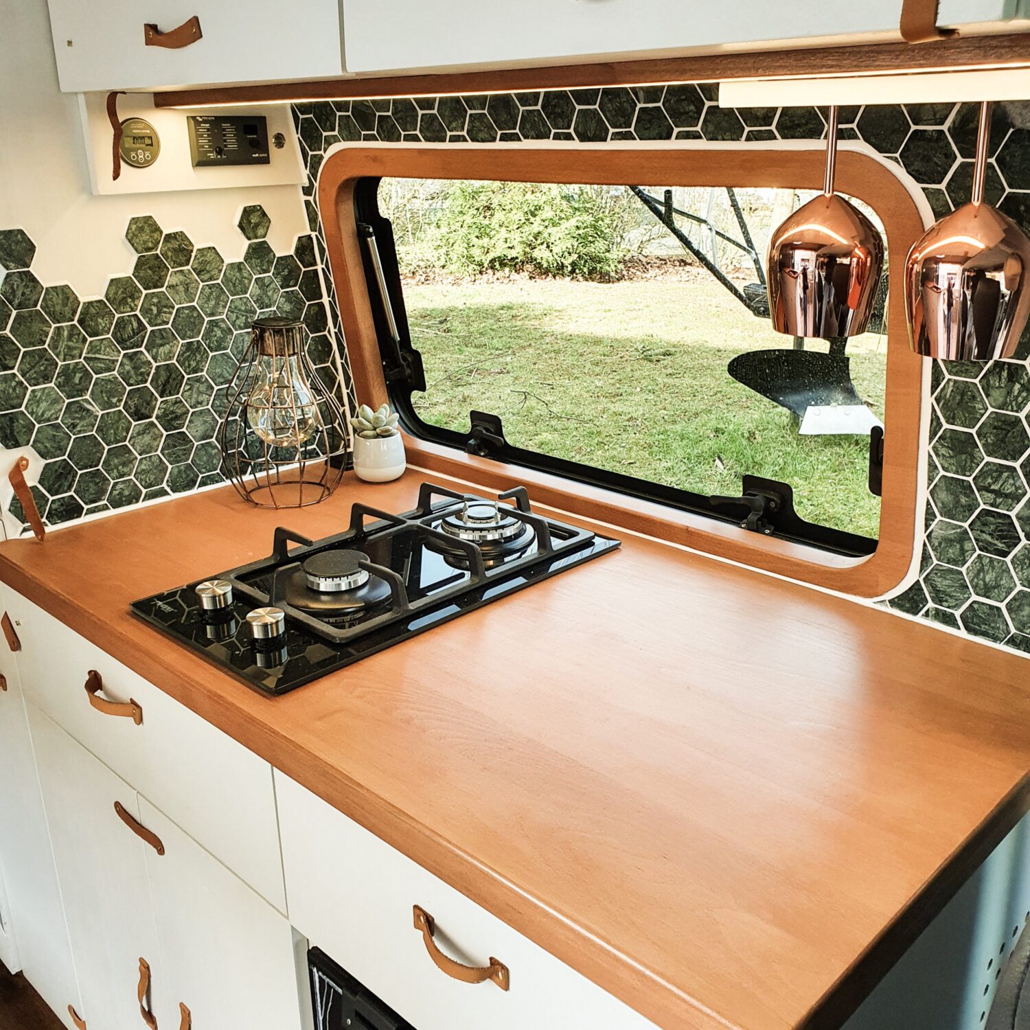 Wir haben 5 Monate gebaut. Besonders stolz sind wir auf unser Murphybed und den Fliesenspiegel in der Küche. Wir haben alles selbst ausgebaut.