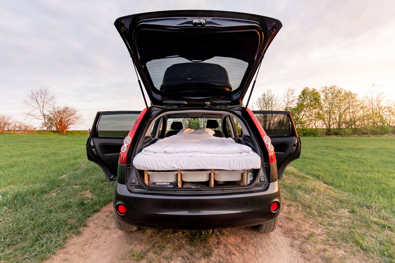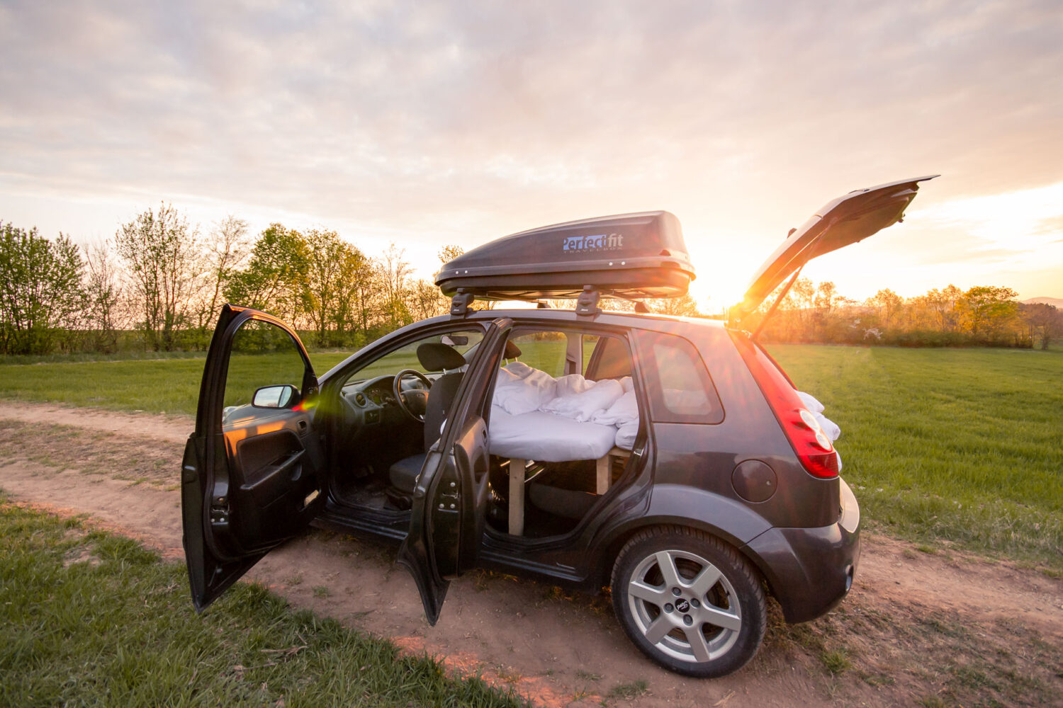 Die Hauptidee im Auto zu schlafen, kam über die Fotografie. Ich fahre gerne mal für den Sonnenauf- und Sonnenuntergang weiter weg. Bisher lief das dann so: Mitten in der Nacht aufstehen, zum Sonnenaufgang dort sein, dann den ganzen Tag dortbleiben, Sonnenuntergang fotografieren und wieder heim – ein echt langer Tag. Und jetzt läuft es so: Nachmittags los, Sonnenuntergang fotografieren, dort übernachten, Sonnenaufgang fotografieren und wieder heim. Eigentlich hatte ich mich fest entschlossen, dass ein Hochdachkombi hersoll. Perfekt für den Alltag und für das flexible Reisen. Preise gecheckt und festgestellt, dass der Kauf eines neuen Autos wohl noch eine Weile dauern wird. Fazit: könnte klappen Doch bis dahin wollte ich nicht warten und so kam mir spontan der Gedanke, ob ich mit meinen 1,65m nicht irgendwie in den Fiesta passen könnte. Dann ging es los und ich habe einige Stunden im Auto verbracht: gemessen, geplant, überlegt.