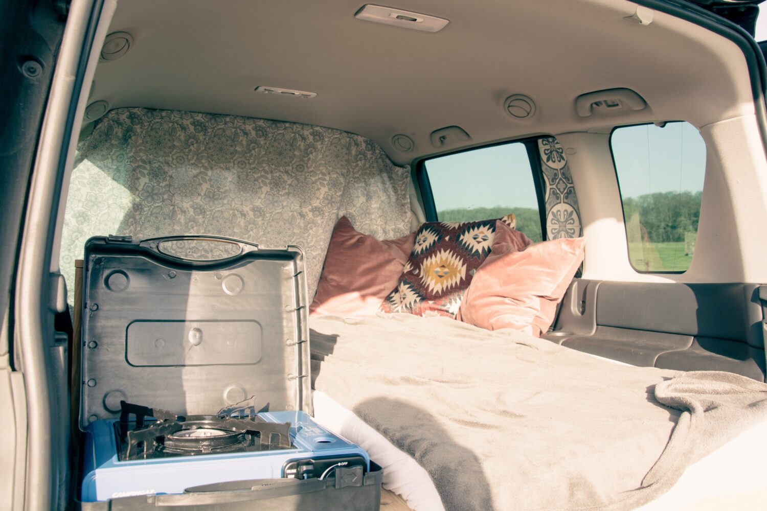 Der Ausbau hat 1 Woche gedauert. Als extra feature gilt der niedrige Unterbau damit man auf der Bank sitzen kann und das einfach ein& ausbauen der Möbel.