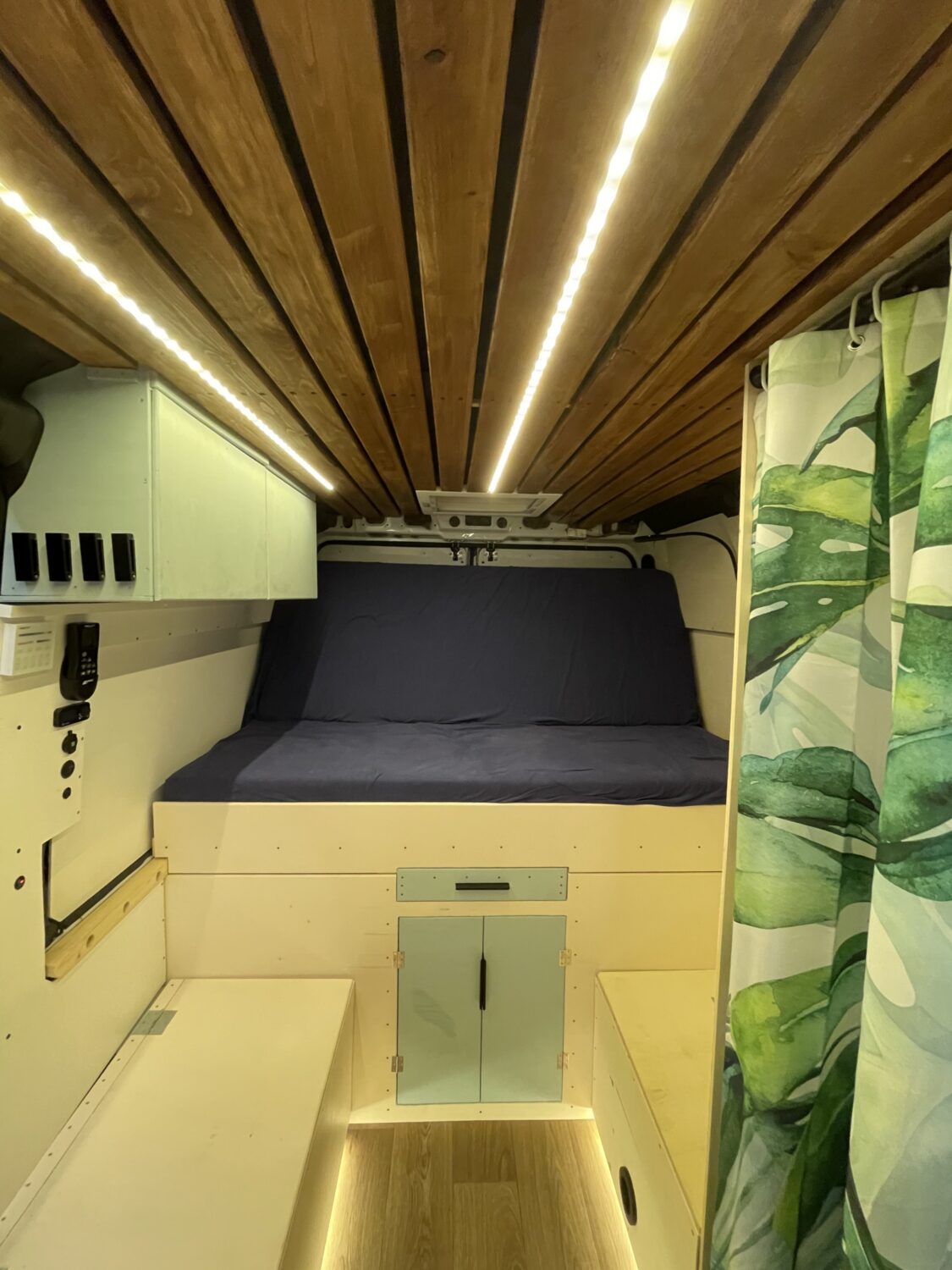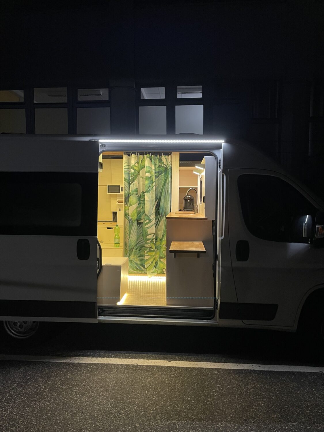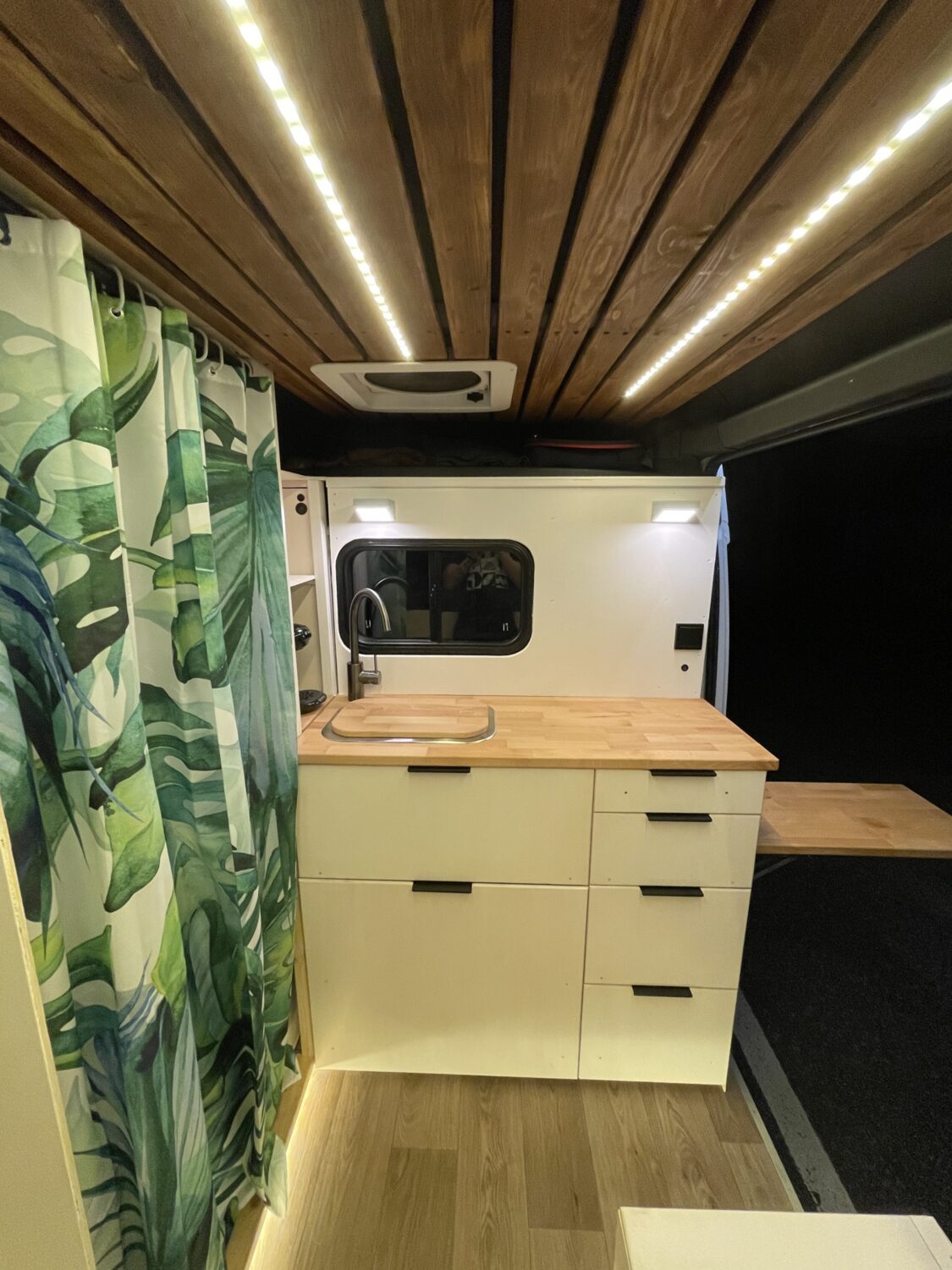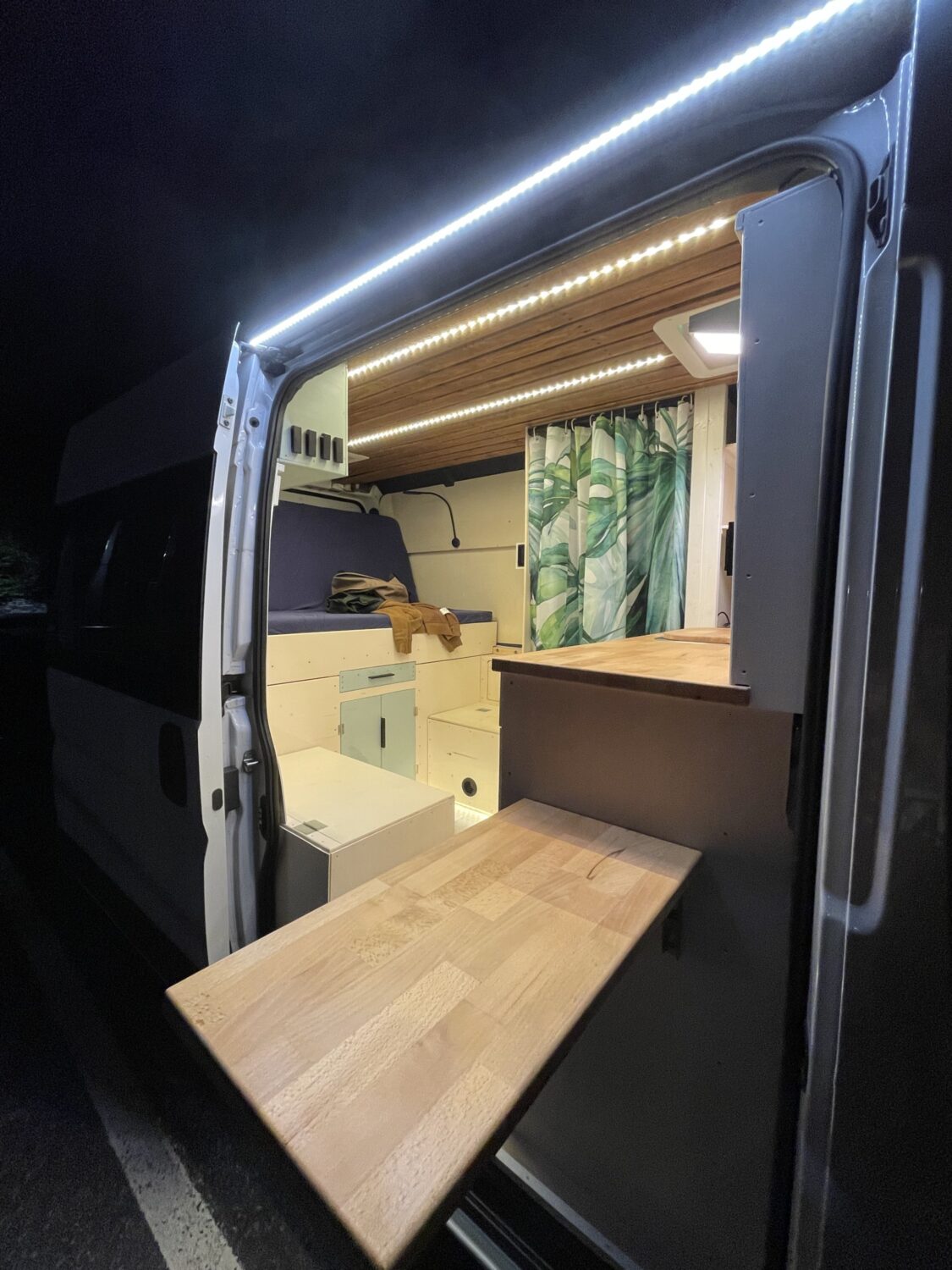 Mitte Januar 2021 habe ich damit angefangen meinen Van auszubauen und befinde mich aktuell noch mitten in Umbauphase. Zur Zeit habe ich bereits die Dämmung (mit Armaflex und Schafswolle), den Boden, die Elektrik, ein Bett (klappbar, 140x180cm), die Küchentheke sowie zwei Sitzplätze eingebaut. Geplant ist noch eine Dusche sowie eine Menge kleiner Details.