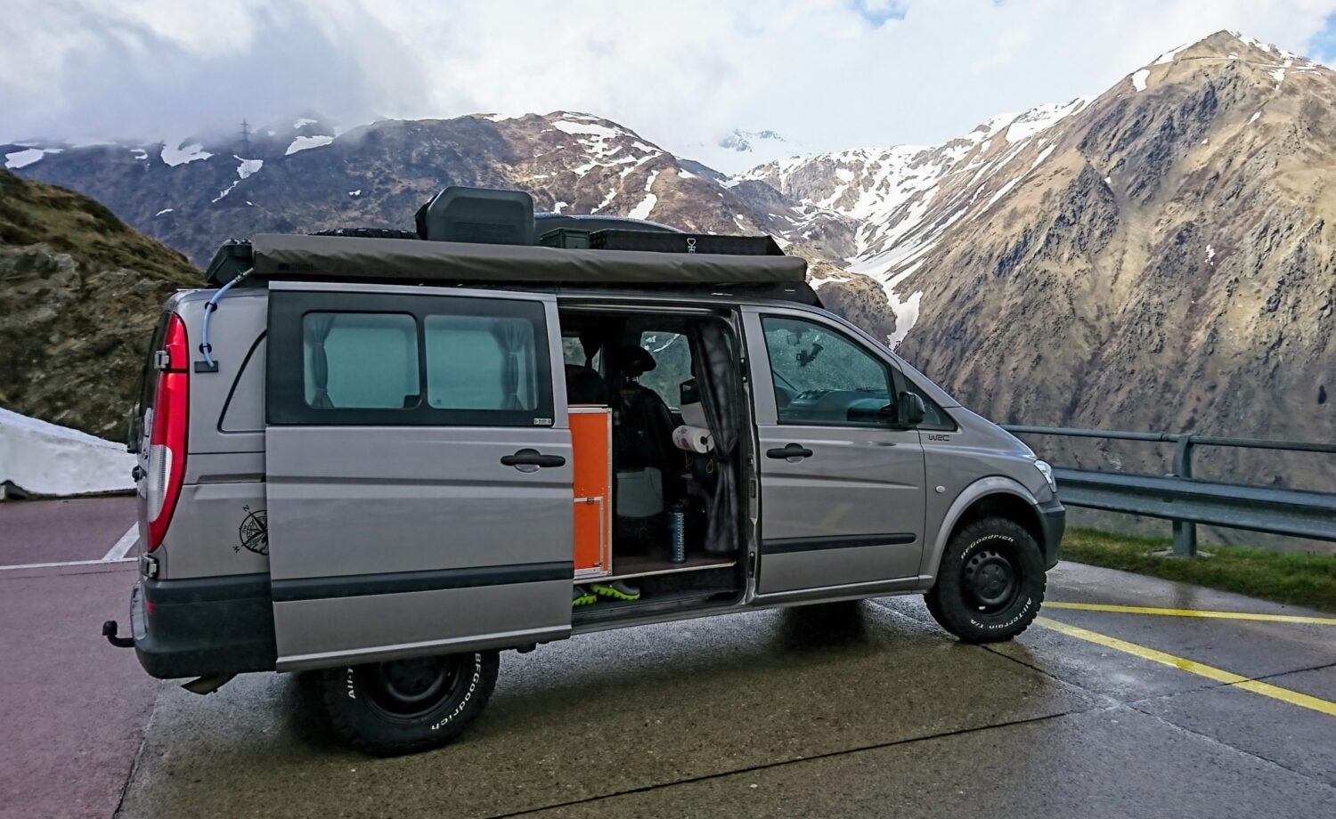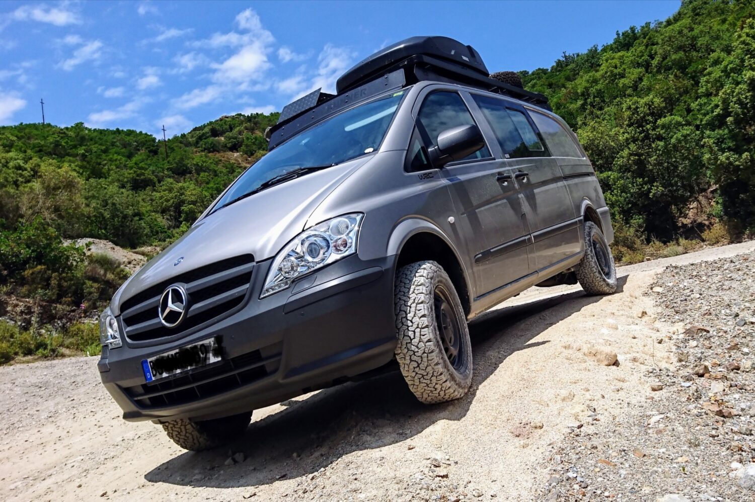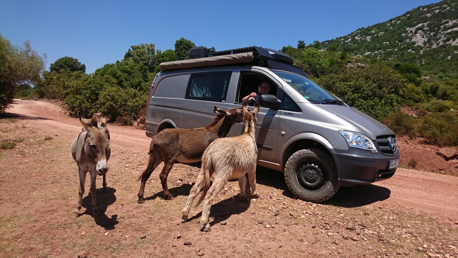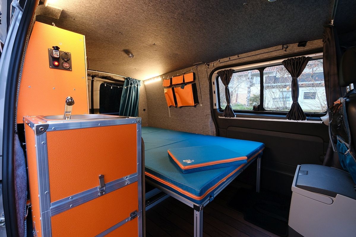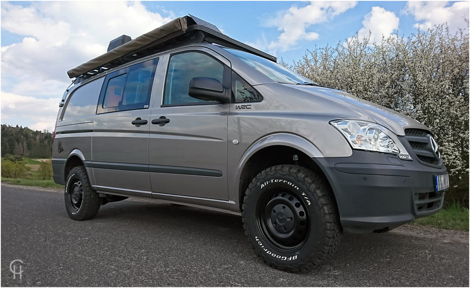 Wir haben aufgehört, die Stunden zu zählen, die wir mit dem Ausbau verbracht haben. Unser RICOBERT hat eine variable Bettkonstruktion mit integriertem Auszug aus Aluminium-Profilen. Die Möbel sind aus Flightcase-Material. Besonders stolz sind wir auf die kleinste Küche, die wir kennen - auf einer Grundfläche von 35x42 cm sind Wasserkanister, Spülbecken und Gaskocher untergebracht. Seit kurzem ist unser Bus 7 cm höhergelegt, hat fette AT-Reifen und einen Unterfahrschutz bekommen.