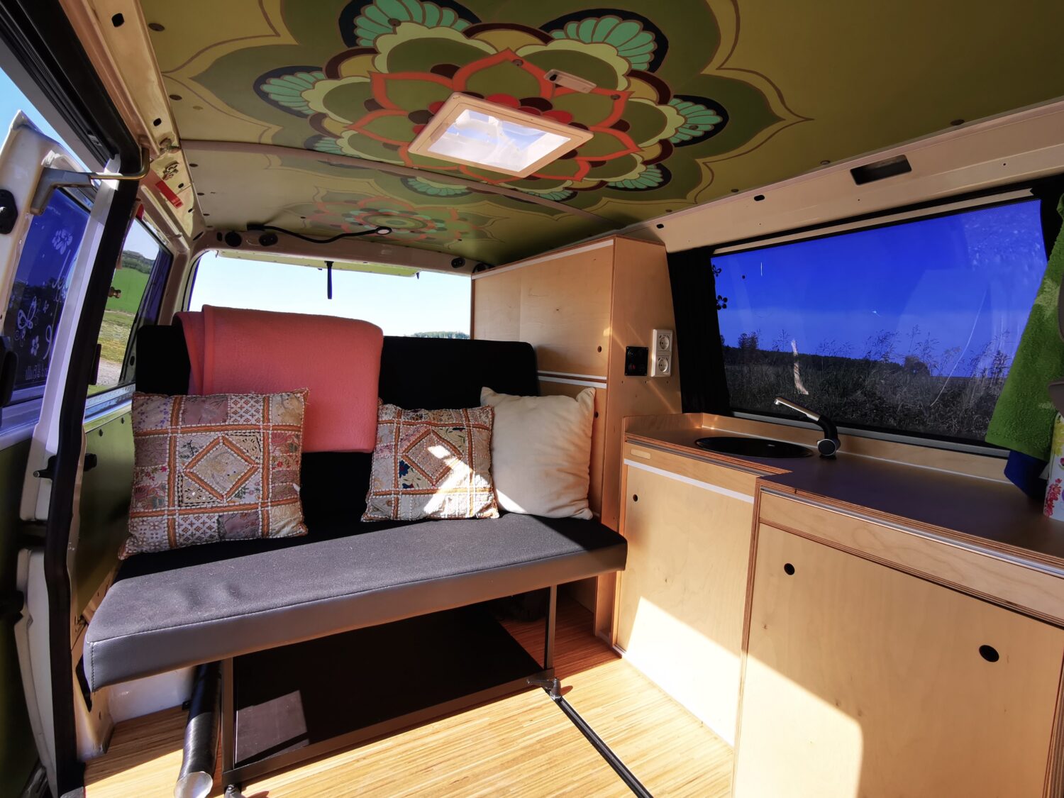 Mein Bulli bekommt aktuell seinen 3. Ausbau. Ich habe ihn von der Vorbesitzerin (damals hieß er noch Drexlmeier) bereits mit einem Weekender-Ausbau übernommen. Den habe ich dann letztes Jahr "optimiert" sowie den Strom neu gemacht, was etwas eskaliert ist, und am Ende ein komplett neuer Weekender-Ausbau eingebaut war. In diesem Jahr erfülle ich mir nun selbst den Traum eines komplett neuen Ausbaus mit allem was dazu gehört um für mehrere Tage autark zu sein. Dabei achte ich ein wenig darauf möglichst viele natürliche Materialen zu nutzen, wie Holzmöbel und Parkettboden. So wird's dannn auch gemütlich.
