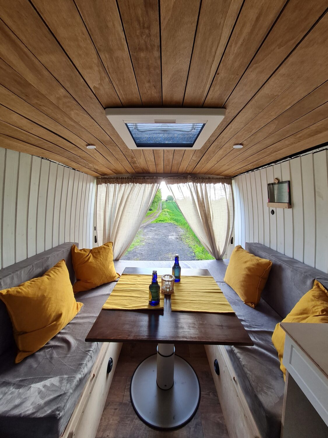 Sitzgruppe für ca 6 -7 Personen, gleichzeitig kann diese zu einem Bett von 160x187cm umgebaut werden, Kamin, 2x Planar 2d mit Warmwasserboiler, sehr große Küche, alles weitere ist noch im Bau