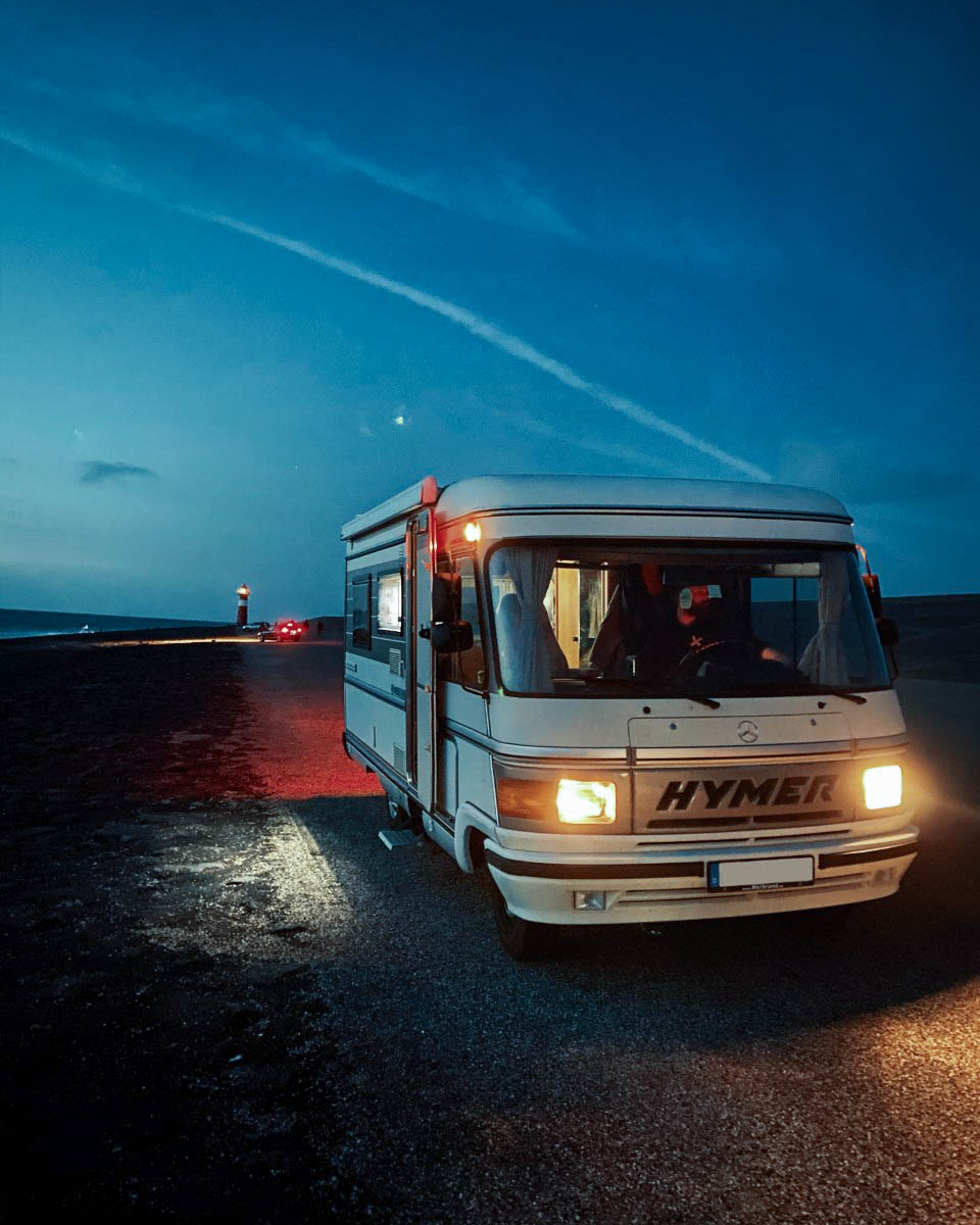 Wir sind zusammen gekommen, als wir Anfang 20 waren und hatten direkt die Gemeinsamkeit entdeckt, dass wir beide gerne verreisen und auch gerne mal die Möglichkeit eines spontanen Ausfluges hätten. Unzählige Male sind wir in der tiefsten Nacht mit dem Kleinwagen ans Meer abgehauen und haben da so einfach geschlafen. Also wurde klar: wir brauchen die Freiheit durch einen eigenen Van. Lange Zeit stellte sich das Leben dazwischen, da die finanziellen Mittel fehlten. Sobald wir „richtig erwachsen- waren diesbezüglich haben wir uns auf die Suche gemacht nach dem perfekten mobilen Heim. Durch unfassbar viel Inspiration war der Traum eigentlich selber einen Van auszubauen. Da die Berufswelt, die nötig für die Finanzierung des Ganzen ist, aber zu viel Zeit einnimmt wurde schnell klar das uns ehrlich gesagt aber die Zeit fehlt wenn wir irgendwann zeitnah auch mal auf die Straße wollen mit dem Gefährt. Jan ist früher mit seinen Eltern schon mit einem alten Hymer verreist und auch Rica hat von ihrem Vater erfahren, dass er damals mit einem unterwegs war und wie unfassbar zuverlässig sie einfach sind. Also wuchs die Liebe zu einem Hymeroldtimer und die Suche begann speziell nach so einem. Irgendwann war Elvis also da im Sommer 2020 und wir sind direkt in den Urlaub gedüst und haben einige Wochenenden auch mit Kurztrips verbracht, schnell war die Instagramseite erstellt und die ersten Kontakte in der Vancommunity geknüpft. Im Winter 20/21 fingen wir mit den Umbauarbeiten an und jetzt im Frühjahr haben wir kurzzeitig gestoppt damit, so dass wir nach Italien düsen konnten. Wir haben unser Herz an die Vancommunity verloren und bemerkt was für herzliche Menschen unter sämtlichen Campern jeglicher Art zu finden sind und freuen uns über noch viel mehr Austausch durch VansofGermany