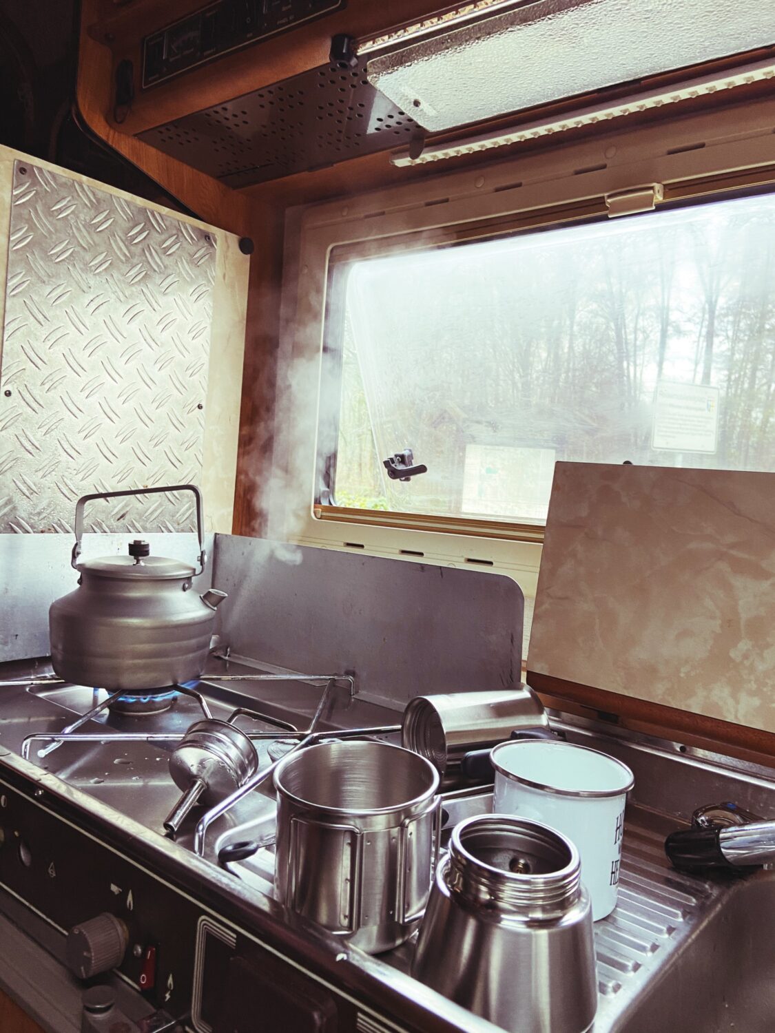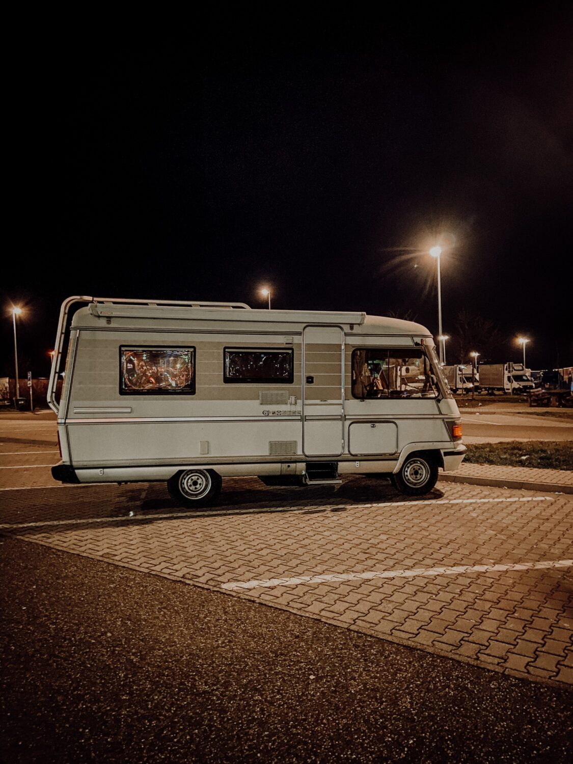 Wir mussten Elvis nicht ausbauen, da er ein bereits fertiges Wohnmobil ist. Wir restaurieren ihn aber, damit er einigermaßen im 21. Jahrhundert ankommt. Für die bisherigen Renovierungsarbeiten haben wir mit Unterbrechung bis jetzt so ca 3 Monate benötigt; sind aber auch noch nicht ganz fertig, da wir immer wieder schon wegfahren. Besonders stolz sind wir auf alles was wir halt geändert haben und ändern wollen. Eine Philips Hue Ambilight gesteuert durch eine Alexa gab es halt vorher nicht. Auch haben wir sämtliche Möbel gebeizt um den 80er Jahre chic los zu werden und haben aus der Kühlschranktür eine Tafel gemacht. Glücklich sind wir über den 90l Tank, das zusätzliche Hubbett und das man aus dem Wasserhahn im Waschbecken des Badezimmers eine Dusche machen kann. Auch das GFK-Dach ist praktisch, da wir dadurch eine Minidachterrasse haben. Als nächstes ändern werden wir den Boden, das Badezimmer, die Sitzbänke, den Esstisch und vor allem die Polster. Es ist noch viel zu machen