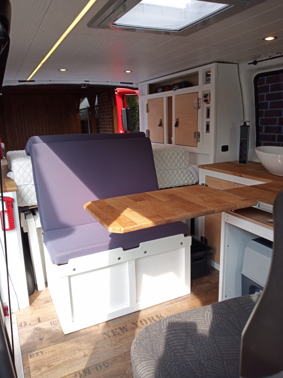 Wir sind als Vater-Sohn Low-cost Projekt (Mutti hat natürlich auch geholfen) gestartet. Nach ca 6 Monaten Ausbauzeit (im Winter und im Carport) haben wir doch, wie wir denken einen tollen Van hin gestellt. Highlight ist sicherlich, neben der Optik das für einen L1H1 Van große 1,35 x 195m Bett. 30L Frischwasser, 130W Solarmodul 100Ah Batterie, Drohkonsole Beifahrer, 38L Kompressorkühlbox. Was braucht man mehr? #knowledge.van.project