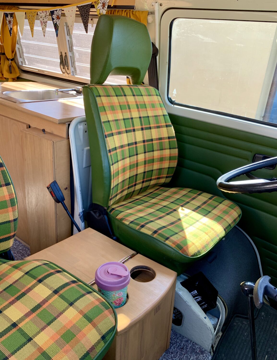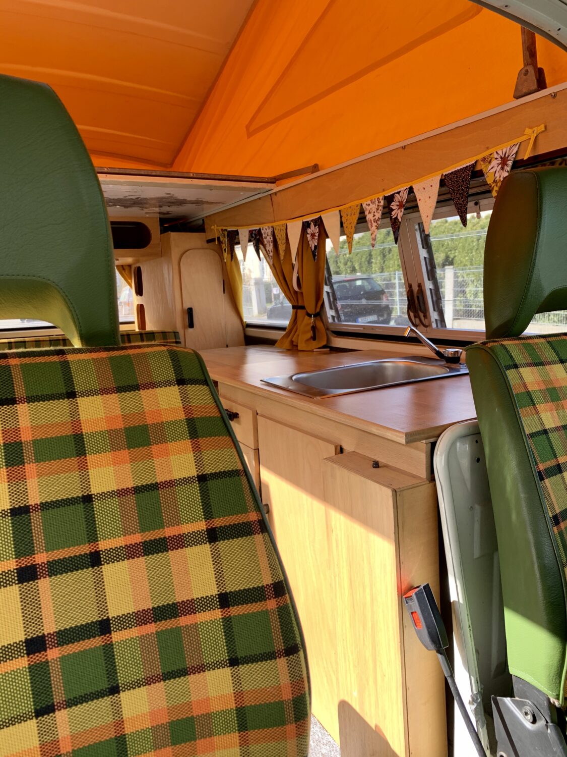 "-DA ES BEIM VORBESITZER IM INNENRAUM EINEN WASSERSCHADEN GAB, HABEN WIR ÜBER DIESEN WINTER DEN KOMPLETTEN INNENAUSBAU NEU GEMACHT. BEIM DESIGN UND DEN MASSEN HABEN WIR UNS AN DIE ORGINAL WESTFALIA AUSSTATTUNG GEHALTEN."