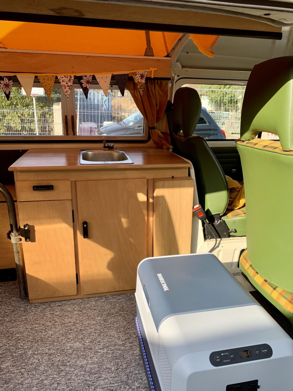 Wir haben den Bus im September 2018 gekauft. Da der Vorbesitzer den Bus leider sehr vernachlässigt hat und viele Reparaturen nur notdürftig durchgeführt hat, mussten wir viel Arbeit hineinstecken. Alles in allem sind wir seit Jahresbeginn komplett fertig. Wir mussten den Motor ausbauen und komplett überholen (jetzt 2.0 Liter und 90 PS statt 70PS), Getrieben überholen und die Bremsen erneuern. Da es beim Vorbesitzer im Innenraum einen Wasserschaden gab, haben wir über diesen Winter den kompletten Innenausbau neu gemacht. Beim Design und den Maßen haben wir uns an die Orginal Westfalia Ausstattung gehalten. In diesem Zug wurde die Wilma auch neu gedämmt und isoliert. Die Elektrik haben wir erneuert und eine Zusatzbatterie verbaut (jetzt 220ah). Alles in allem haben wir viel Liebe, Zeit und Nerven in unsere Wilma gesteckt :)
