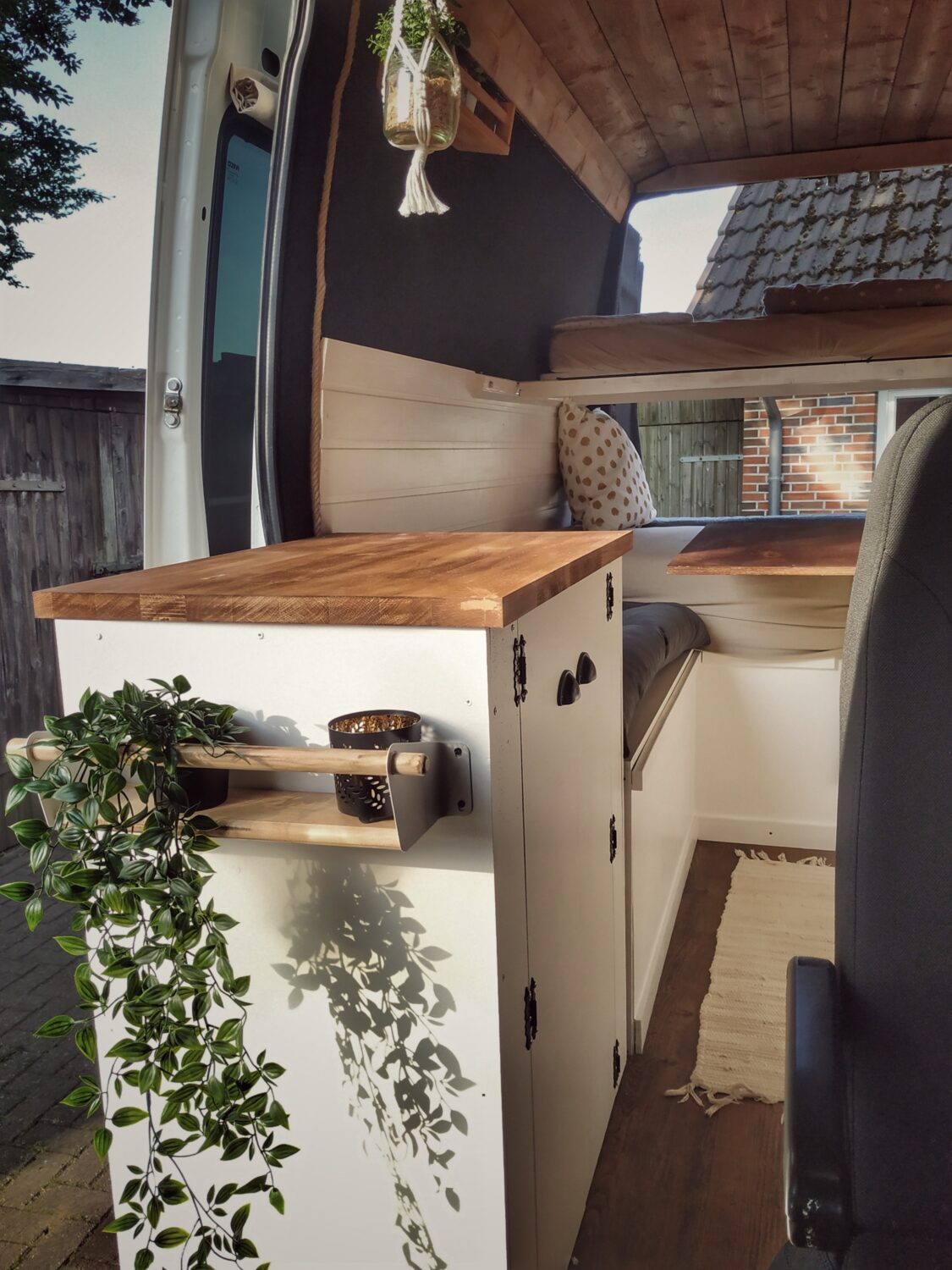Der Ausbau hat ca. 6 Monate gedauert. Da wir mit 2 Kindern unterwegs sind, haben wir ein klappbares Etagenbett eingebaut welches man ganz ab und aufbauen kann . LED Spots, USB Buchsen und eine Wasserpumpe für den Wasserhahn sind auch verbaut. Eine CE Dose ist auch schon montiert muss aber noch verkabelt werden .