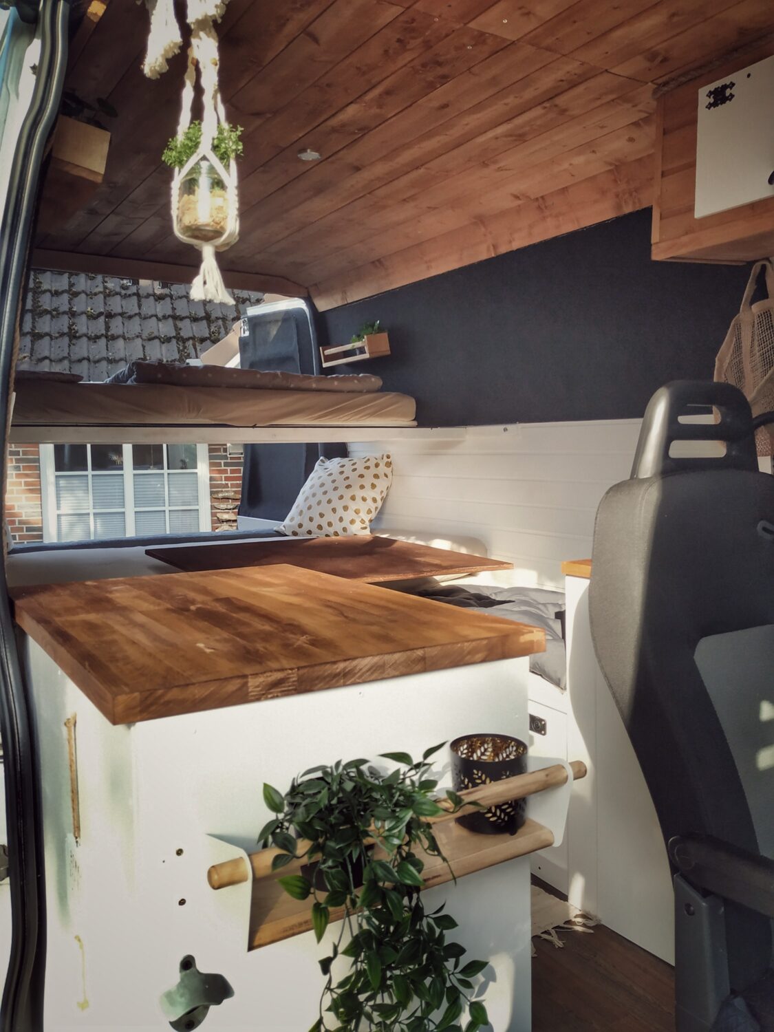 "Da wir mit 2 Kindern unterwegs sind, haben wir ein klappbares Etagenbett eingebaut welches man ganz ab und aufbauen kann"