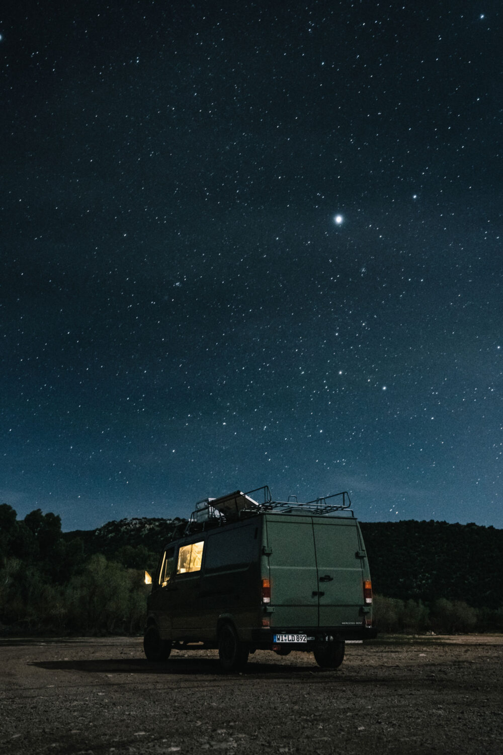 Im Sommer 2018 habe ich meinen Mercedes T1 mit nur 27.000 km von der freiwilligen Feuerwehr aus Steinbrunn (Österreich) gekauft. Nach ein ein paar Monaten Ausbau bin ich dann vollzeit in den Van gezogen, um damit durch Europa zu reisen. Ziemlich spontan hatte ich mich dazu entschlossen nach Marokko zu fahren und meinen Van umlackieren zu lassen, deswegen ist heute auch nichts mehr von seiner Vorgeschichte zu erkennen. Besonders stolz bin ich darauf, den Bus alleine ausgebaut zu haben, obwohl ich zuvor handwerklich so begabt war, dass ich es gerade mal geschafft habe einen Bilderrahmen an die Wand zu hängen :D Meine Dachterasse kann sich aber auch auf jeden Fall sehen lassen!