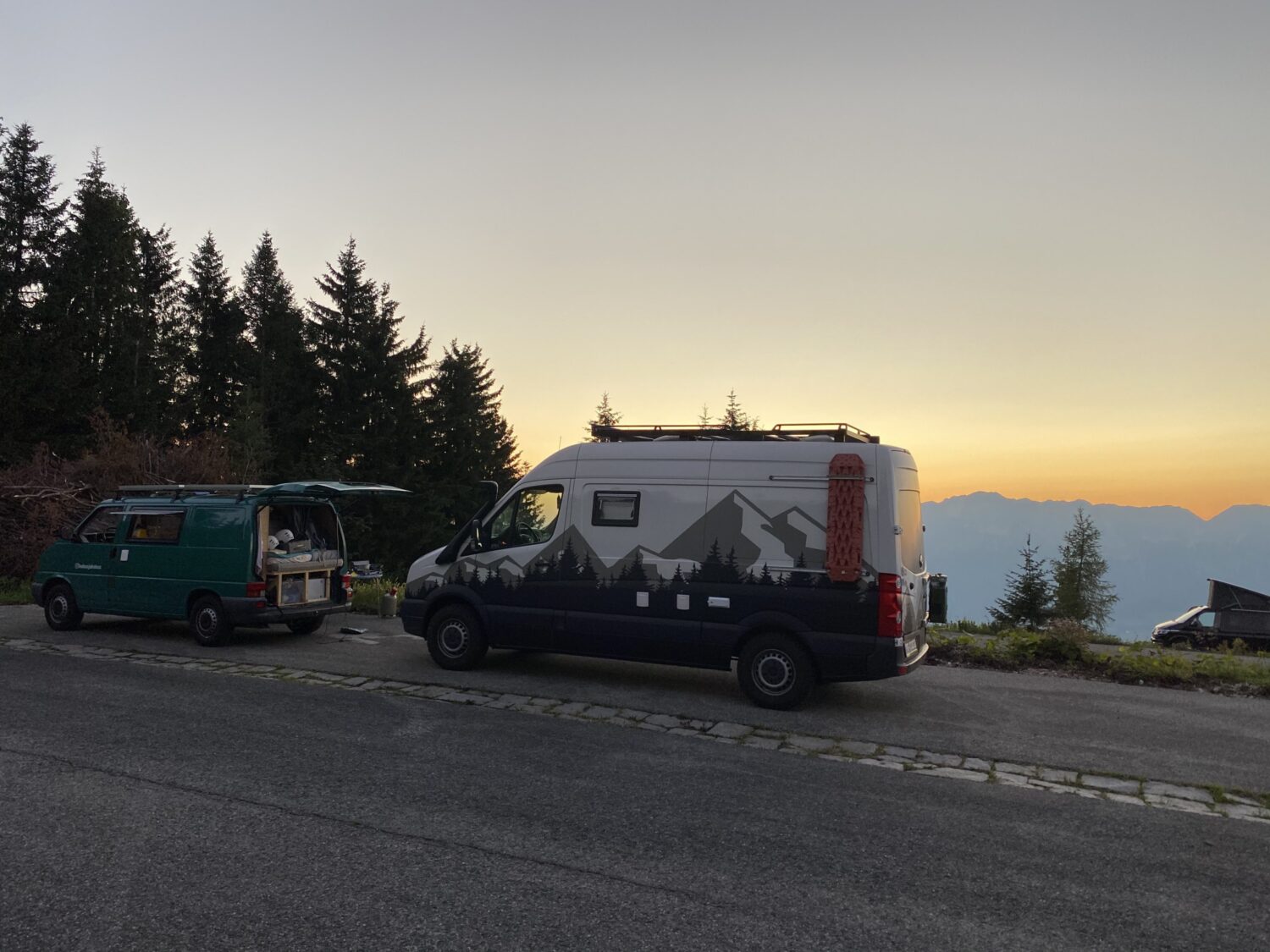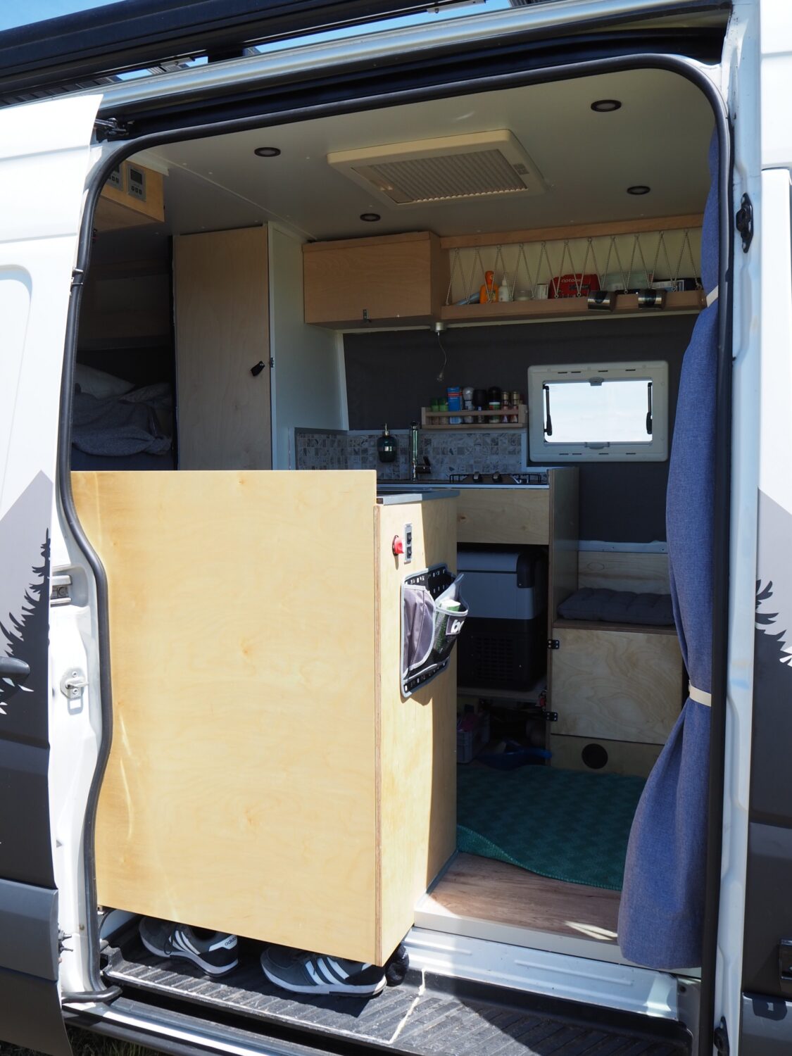 Ausbaudauer: ca 1jahr + immer mal wieder Anpassungen. Aussendusche über Anschlussdose Mega viel Stauraum im Heck Die Geile Folierung á la ,,Freundship- Einfach ein Mega cooler Van 😍