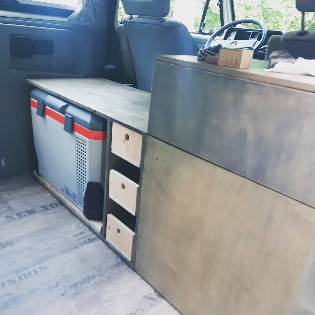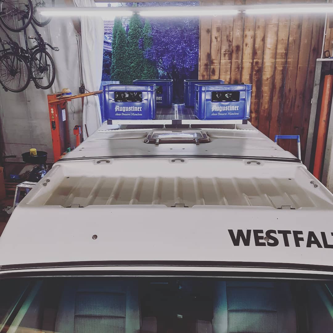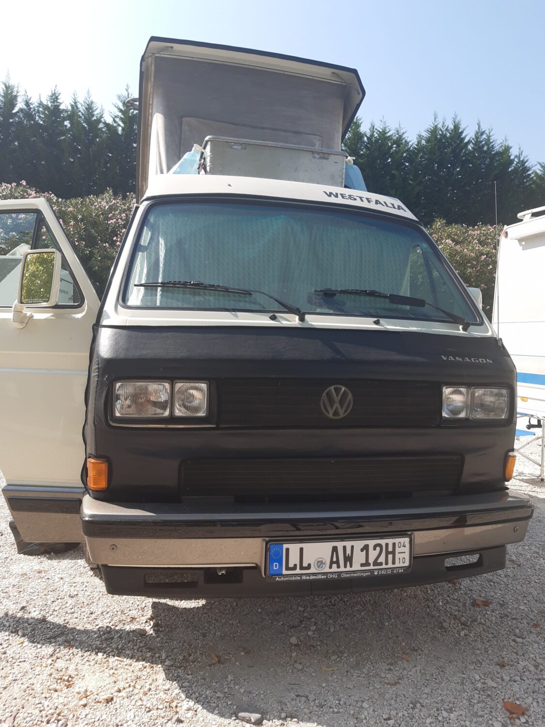 Unsere Olga ist etwas ganz besonderes, nicht nur deshalb weil sie seit jeher in Familienbesitz ist. Gebaut 1990 in Deutschland und umgerüstet in Österreich für den amerikanischen Markt. Was sie nun so besonderes macht... Elektrische Fensterheber, elektrische Spiegelverstellung, Klimaanlage, Zentralverriegelung, Tempomat sind bei ihr seit Stunde Null verbaut. Besonders stolz sind wir zudem auf unser 30 Jahre alten Haubenbra und auf all die kleinen Orginaldetails wie Vorhänge, Polstermöbel, Mückennetze (auch für die Heckklappe) Der Ausbau von Westfalia war bis auf die Küche auch immer schon vorhanden. Das einzige größere nicht Orginal"teil" ist unsere Küche und Solarmodul am Klappdach. Zum Glück haben wir so lange daran rumgeschraubt dass wir nicht mehr genau wissen wie viel Geld wir in die Kompletrestauration gesteckt haben, wahrscheinlich etwa 15.000€