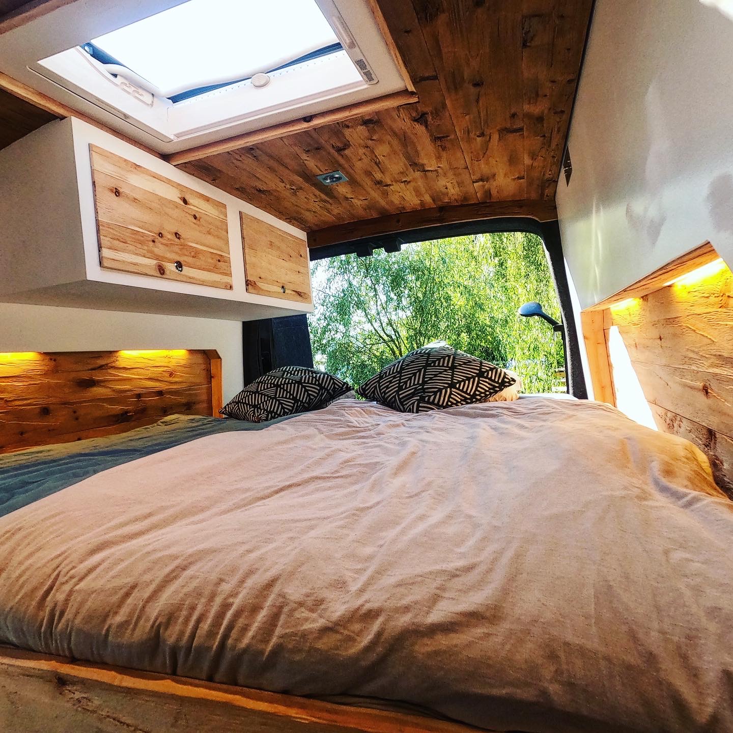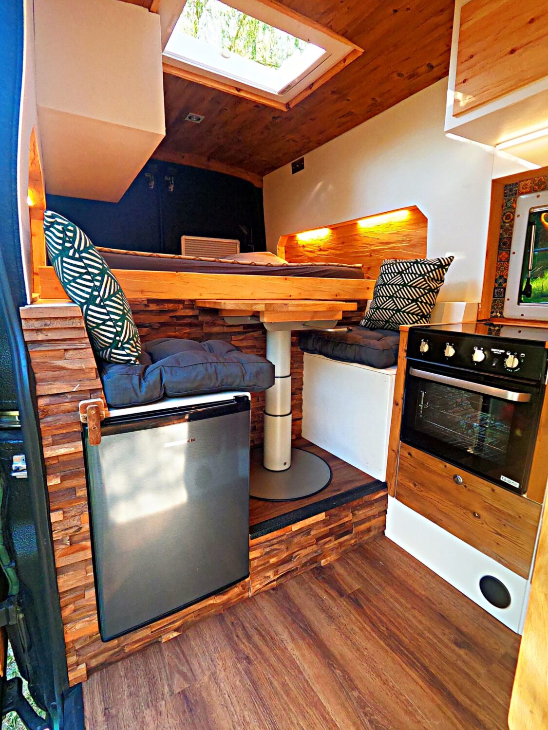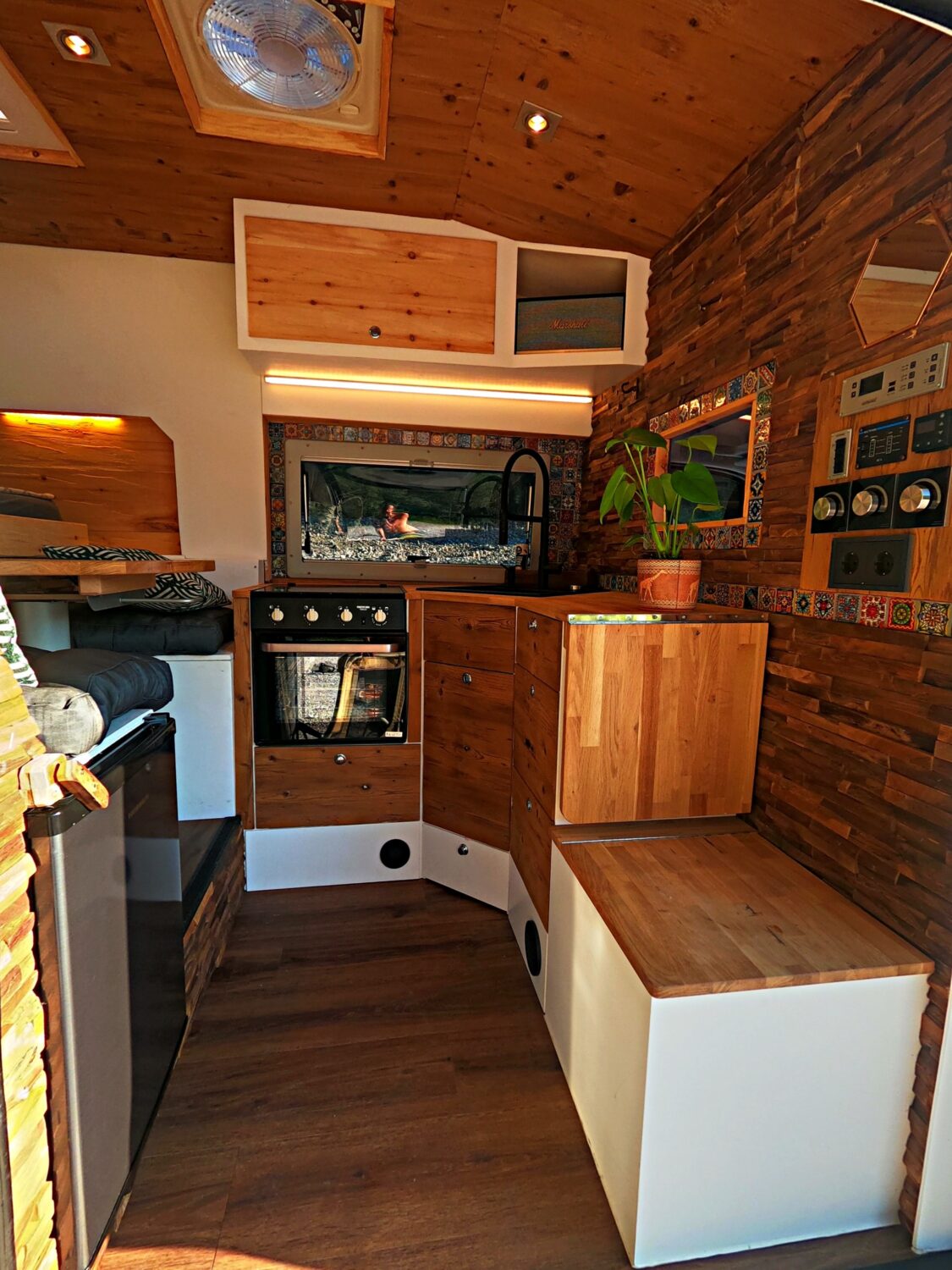 àÃ¥àPura Vida àÃ¥à@puravidacamper (Instagram) wir sind sehr glücklich das er jetzt nach einem jahr Bauzeit endlich fertig ist und wir auf Reisen gehen können. Viel schweiß und nerven und vorallem Zeit wurde investiert und so ist es jetzt einfach ein tolles Gefühl mit so einem schönen Van mit vollster Vollaustattung unterwegs zu sein Der Van soll auch gelegentlich vermietet werden um ein paar Fixkosten wieder reinzubringen. Wir sind sehr Stolz das wir das meiste nur mit Naturmaterialien gebaut haben und haben alles was ein Van braucht. Mann kommt rein und genießt erstmal den tollen Holzgeruch von Zirbe und Fichte Standheizung/Autoterm 2D Heckdusche Dachterasse 120 Ah Lithium Ionen / 300WP Solar Ective 2KW SSi Serie Wechselrichter Hifi Soundsystem und den rest seht ihr ja selbst auf den Bilder :-)