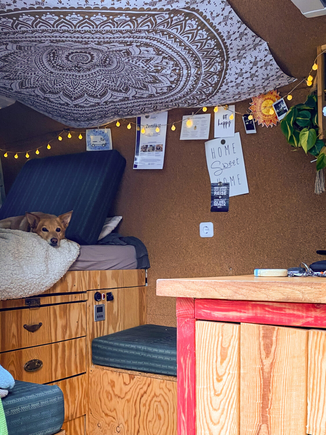 Wir haben Milo im August 2018 gekauft. Der Grundausbau hat ca. 6 Monate gedauert, da wir nur am Wochenende Zeit hatten. Wir haben auch versucht ihn so nachhaltig wie möglich auszubauen, das Holz der Küche ist zum Beispiel von alten Einwegpaletten, die Arbeitsplatte hatten Freunde noch übrig, Armaflex/Kaiflex waren Resterollen con anderen Ausbauern und viel der Ausstattung ist Secondhand z.B. der Kocher, das Waschbecken, die Standheizung, die Campingdusche usw. Nach und vor jedem Trip haben wir den Ausbau immer verbessert. Richtig fertig fühlt es sich erst seit unserer Europareise an, die wir im September 2021 gestartet haben. Wir haben 150W Solar auf dem Dach, eine 230Ah AMG Batterie, eine Webasto Diesel Standheizung, einen Warmwasserboiler, unser Bett ist ausziehbar auf 1,76mx 1,80m, 80l Frischwasser, 25l Abwassertank, Dometic Origo Two Spirituskocher und eine selbstgebaute Trockentrenntoilette. Insgesamt hat uns der Ausbau etwa 10.000€ gekostet.