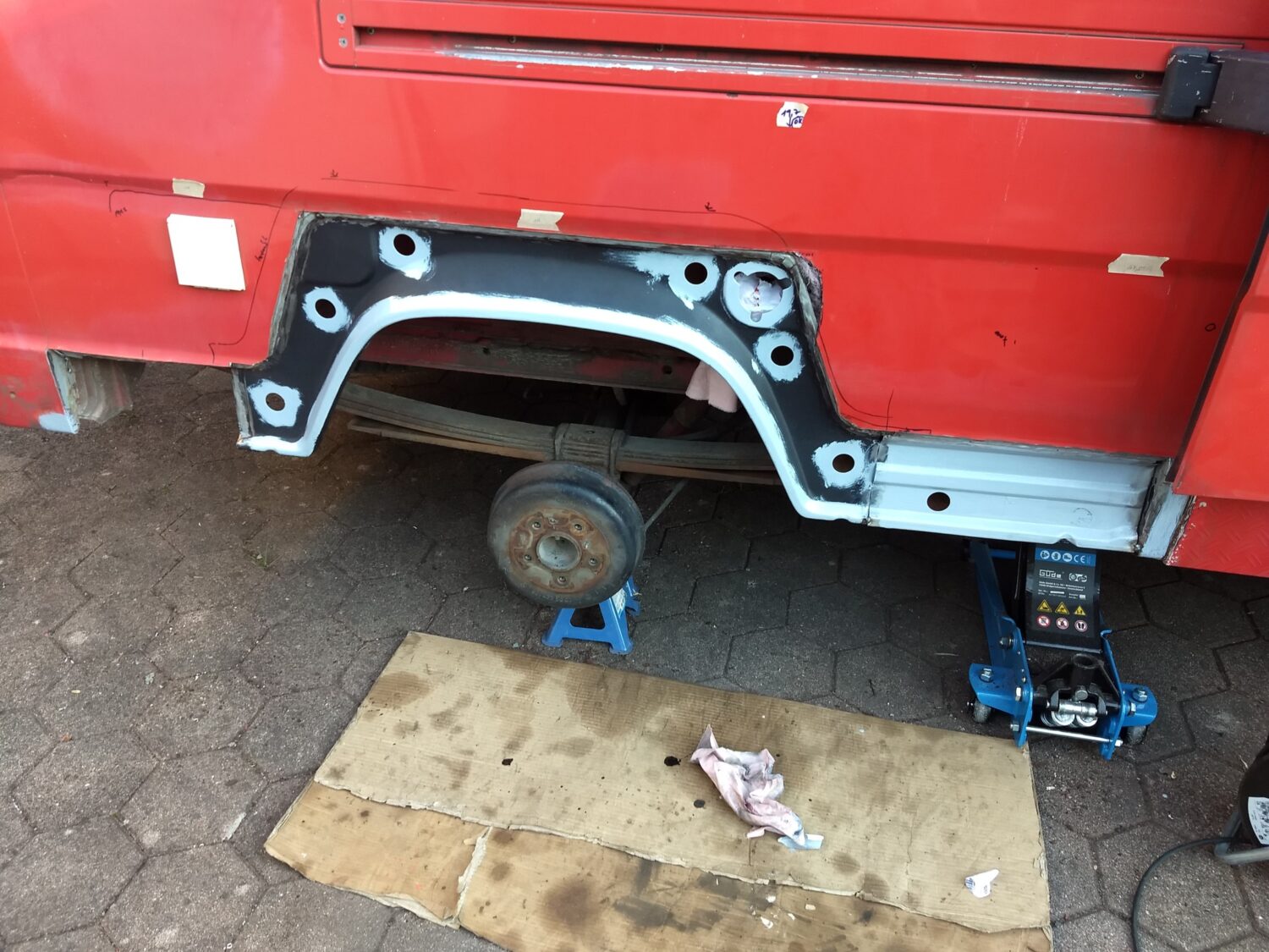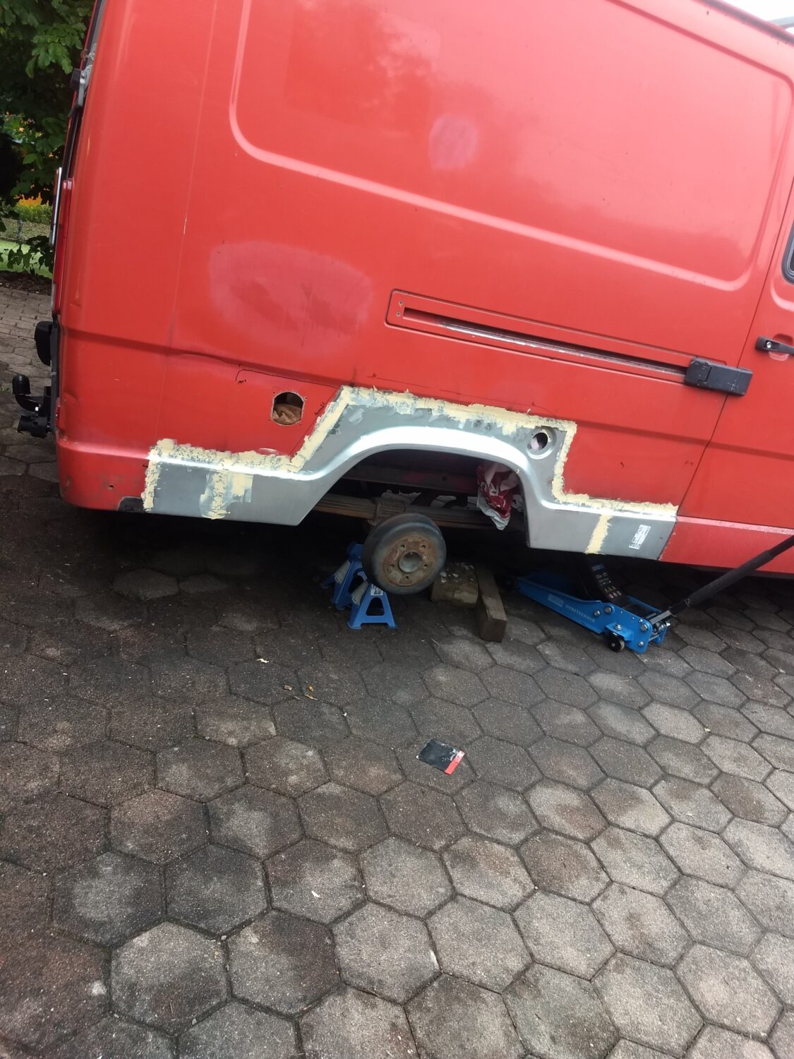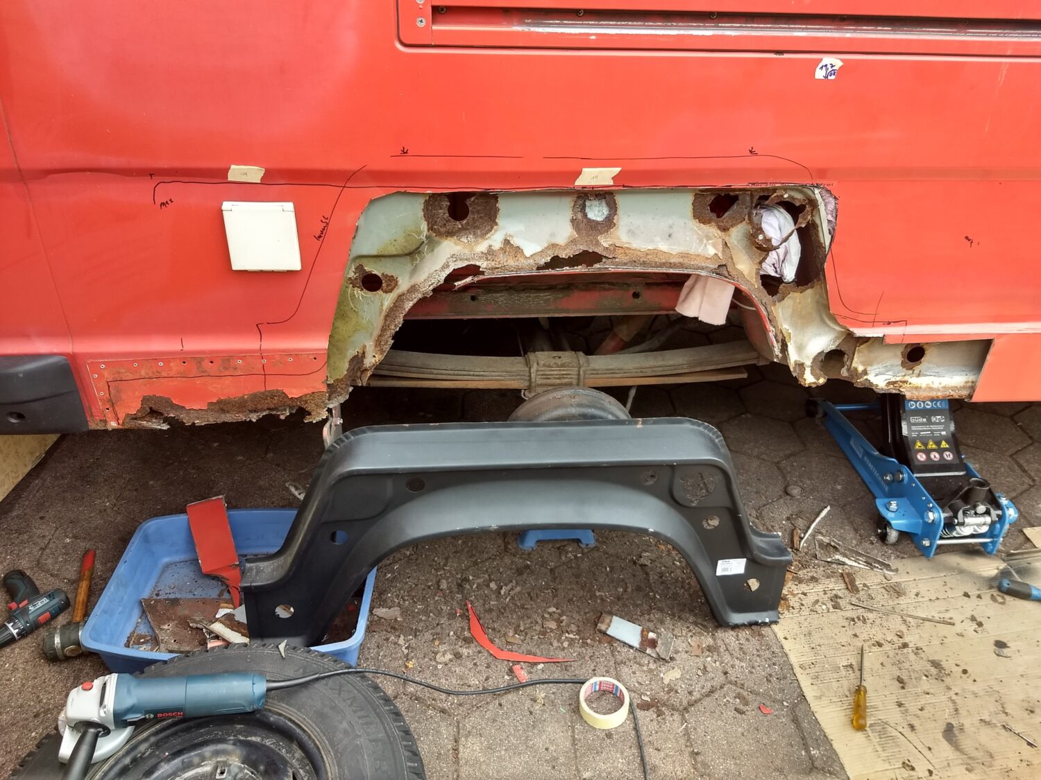 Ich habe bis jetzt 1 Jahre an dem Bus intensiv gearbeitet, sehr viel geschweißt und neue Bleche eingesetzt. Im inneren wurde er komplett gedämmt eine Standheizung verbaut und der komplette Ausbau von mir angefertigt. habe eine Außendusche. Vom lack her muss ich nächstes Jahr noch viel machen aber wichtig ist mir das das Fahrzeug zu jeder Zeit fahrbereit ist und ich jedes Abenteuer damit bestreiten kann. Am besten gefällt mir das ich noch zwei Heck Türen besorgen konnte und somit das Roll Tor der ex Feuerwehr weichen konnte.
