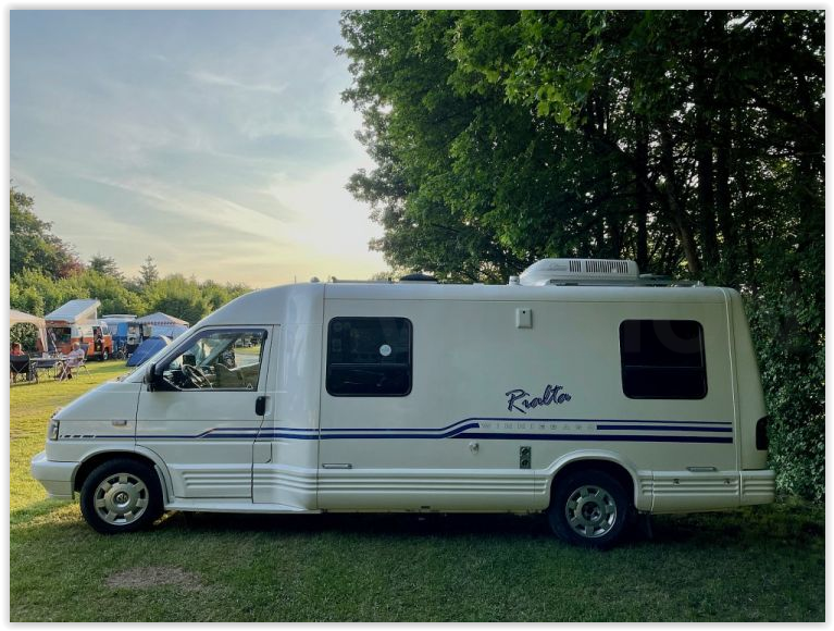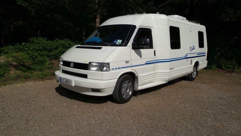 Nach einer schweren Erkrankung habe ich dieses Wohnmobil nach etwa eineinhalbjähriger Suche in Großbritanien gekauft und auf eigener Achse überführt, dass ganze wohlgemerkt vor dem Brexit! Er mußte vier Bedingungen erfüllen: für mich war die Gesamthöhe von 2,57m (mit Dachklimaanlage) entscheidend, damit er in unsere Halle hinein passt, die nur eine Einfahrtshöhe von 2,61m hat und nicht verändert werden konnte, sodass er trocken überwintern kann und dass er eine grüne Umweltplakette erhielt, damit auch Städtereisen möglich sind, ohne jedes mal vor den Städten stehen bleiben zu müßen. Für meine Frau war es wichtig eine Toilette und eine Dusche an Bord zu haben, wobei wir die Dusche in rund zehn Jahren erst einmal wirklich genutzt haben. Wir waren damit in den Niederlanden, Spanien, Portugal, Frankreich, Schweiz, Polen, Großbritanien, Belgien. geplant sind Skandinavien, Schotland und das Baltikum bis Riga (wenn Corona es wieder zuläßt). Außerdem sind wir immer wieder damit auf VW-Bustreffen in der gesamten EU, der Schweiz und Großbritanien zu finden, natürlich auch immer wieder gerne auf deutschen Treffen und haben in 2019 und 2020 unser eigenes Treffen mit Teilnehmern aus den Niederlanden Großbritanien und Deutschland ins Leben gerufen, es heißt: "Kerkgangers". den Namen erhielt es von den niederländischen Gästen, weil es in Kerken am Niederrhein stattfindet und auf deutsch soviel heißt wie: Kirchgänger. Was wünschen wir uns: Tipps und Tricks von Gleichgesinnten zu erfahren, Erfahrungen auszutauschen und eventuell auch Leute zu finden, die ebenfalls einen Winnebago Rialta auf VW T4-Basis fahren um Erfahrungen mit dem Fahrzeug auszutauschen.