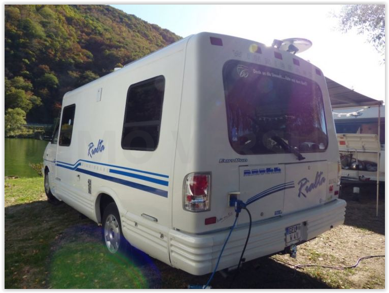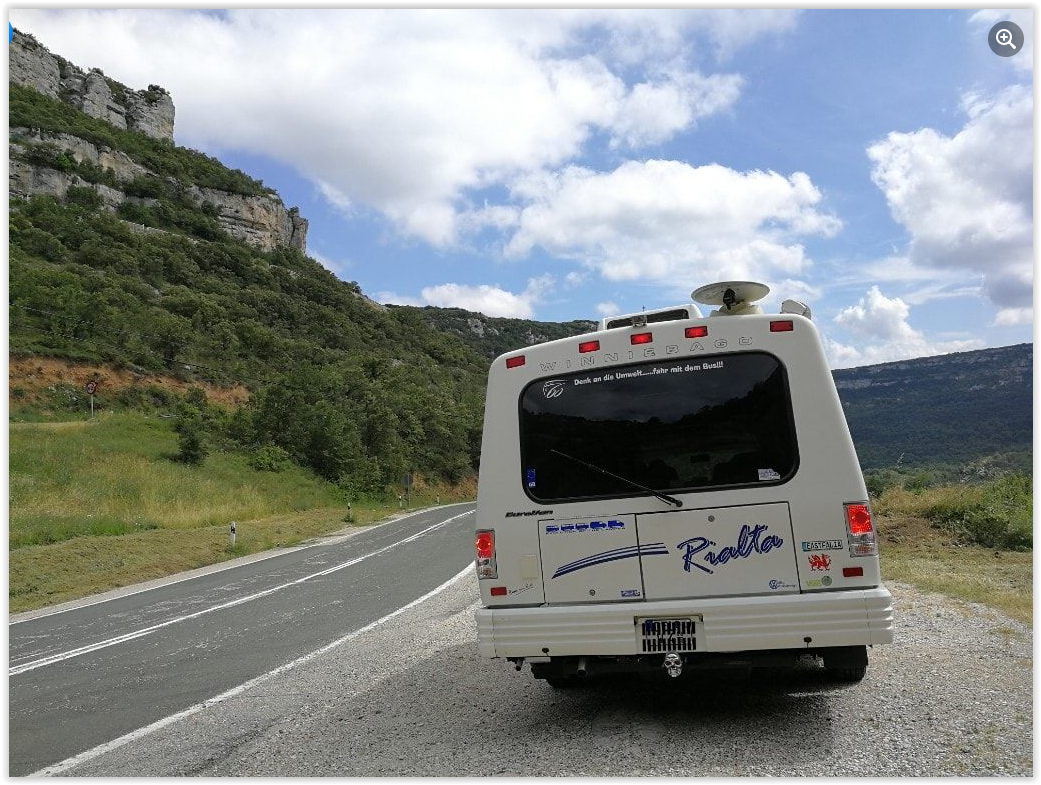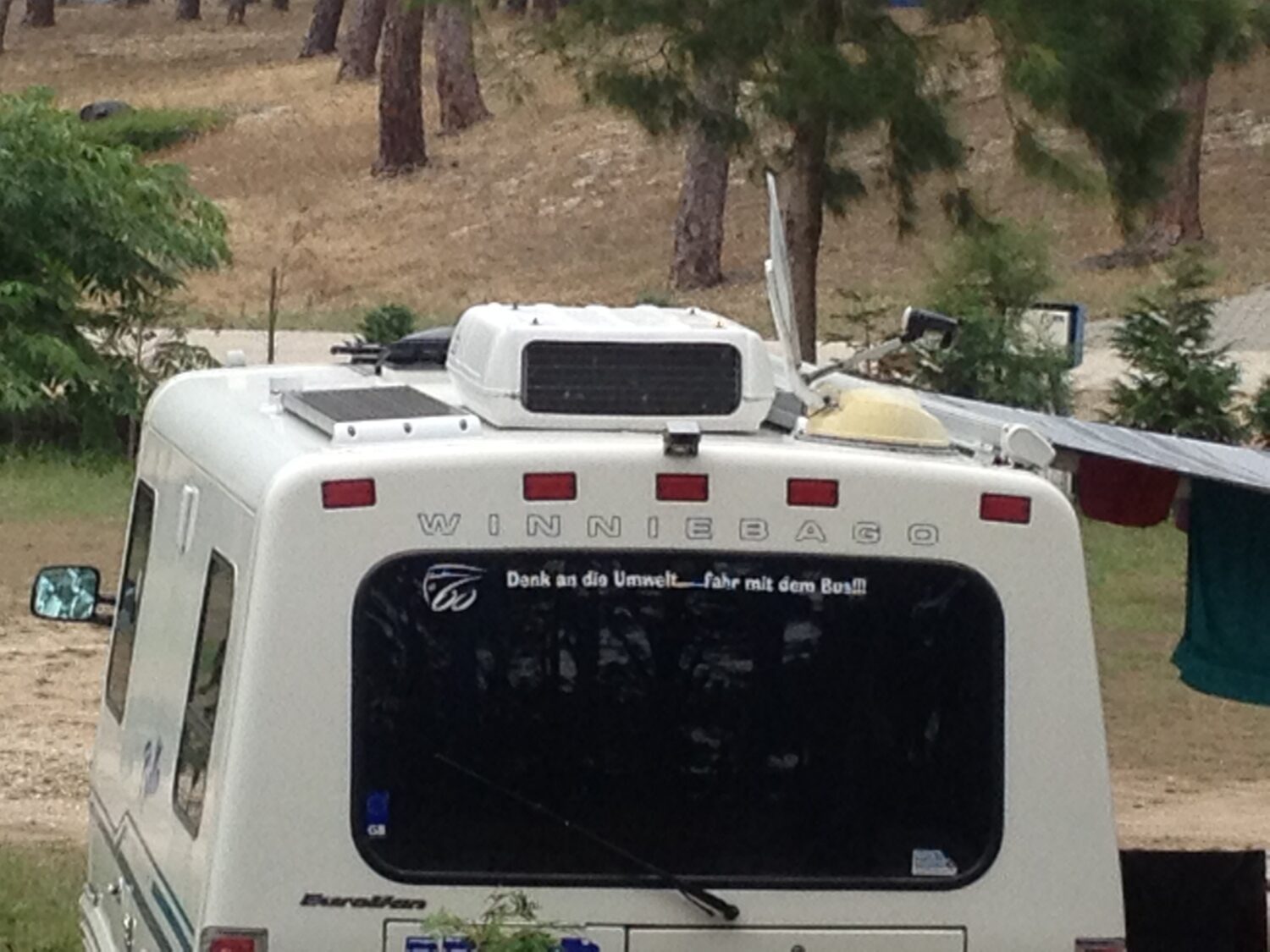 Bis zur Zulassung in Deutschland habe ich über ein Jahr gebraucht. Der TÜV in meinen beiden Nachbarstädten war zur Abnahme nicht in der Lage (weil Importfahrzeug), daher mußte ich zur TÜV-übergeordneten Behörde, dem Institut für Fahrzeugtechnik beim TÜV-Rheinland nach Essen. Er ist umgerüstet auf LPG und ich fahre auf LPG, kochen, heizen und ursprünglich auch kühlen ebenfalls auf LPG aus dem gleichen (40 Liter) Tank. Insgesamt 105 Liter brutto LPG in drei Tanks, netto ca. 85 Liter, die reichen für gut 400km. Features ab Werk: Generator, Mikrowelle, Toilette, Dusche, vier Schlafplätze, 8 Sitzplätze eingetragen und mit Anschnallgurten versehen. Zusätzliche eingebaute Features: Markise Fiamma F65, Satelitenschüßel mit LED-Farbfernseher, Kompressorkühlschrank, Außendusche, ab Katalysator komplette Edelstahlauspuffanlage, 240W Solaranlage auf dem Dach montiert.