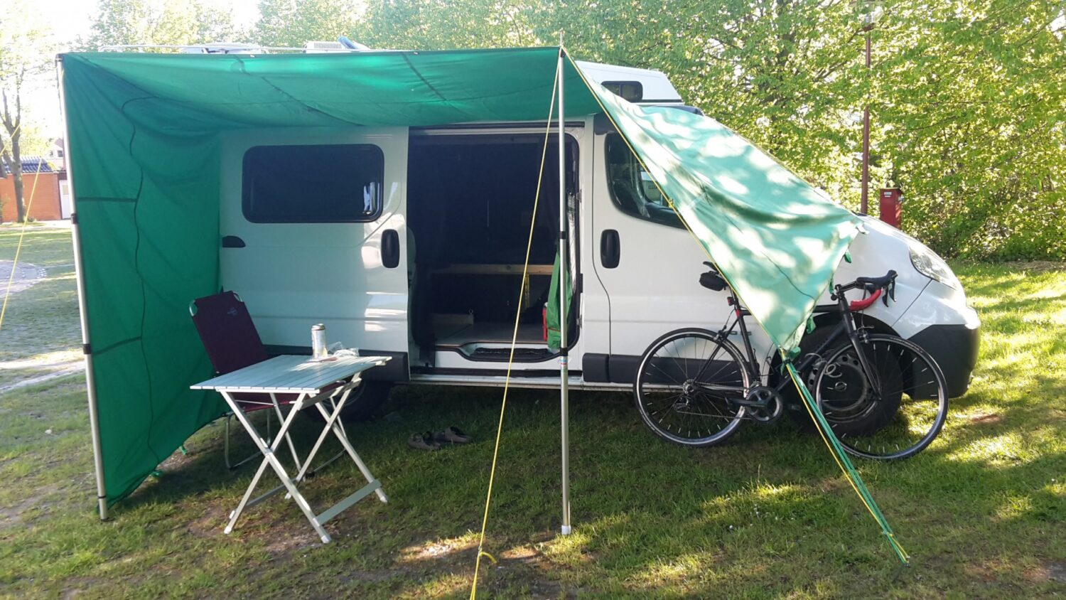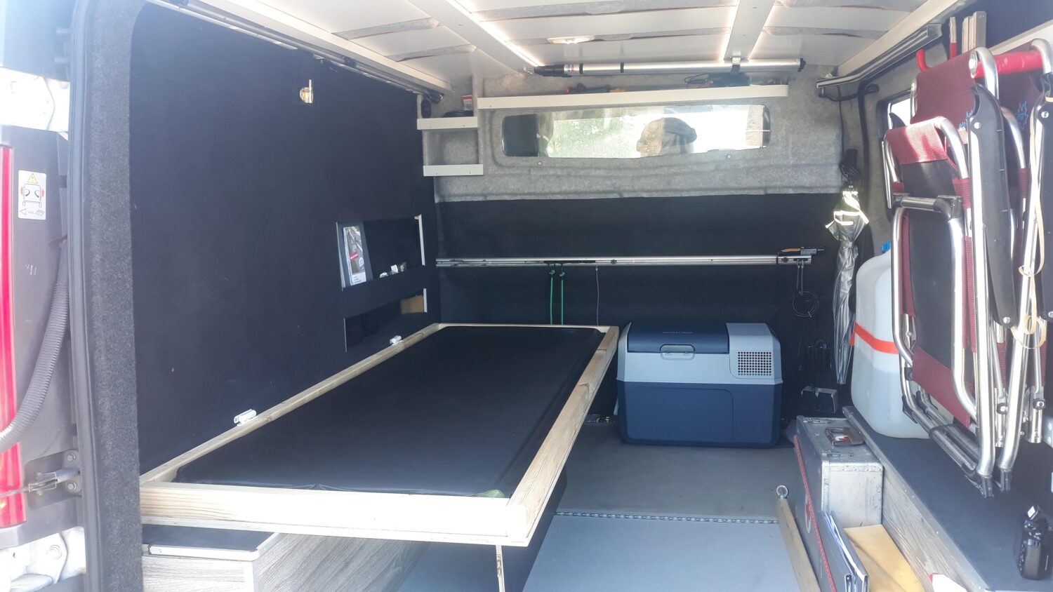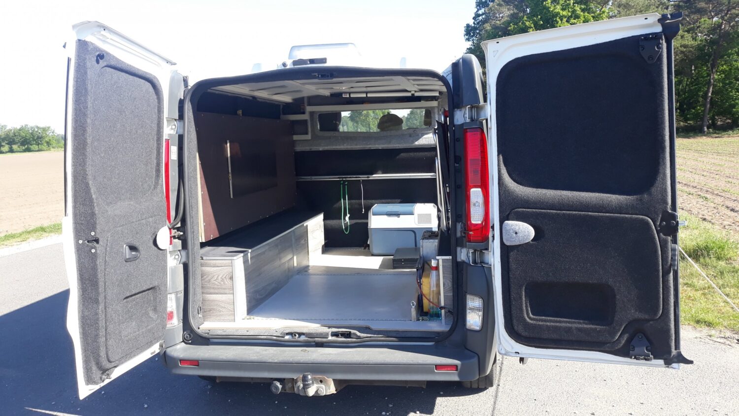 Moin Meinen Kühlschrank habe ich im August 2016 gegen meinen normalen Kombi "eingetauscht". Schon länger hatte ich mit dem Gedanken gespielt statt einem PKW einen Bus zu besitzen. Praktisch: Mopped oder Fahrrad rein, keine Probleme bei größeren Einkäufen im Baumarkt und vielleicht auch mal drin schlafen können. Gleichzeitig sollte er aber auch klein genug sein um für Arbeit und Alltag zu funktionieren. Der Nissan Primastar (in diesem Baujahr = Renault Trafic und Opel Vivaro) ist ein geschlossener Kasten mit LKW Zulassung und war als Werkstatt- und Mietwagen einer Nissanwerkstatt bis zum Kauf 47tkm im Einsatz. Der Ausbau ist über die Jahre in mehreren kleinen Etappen entstanden (inklusive dem einen oder anderen Rückbau natürlich). Am Anfang kam ein fertiger Ladeboden mit drei Airlineschienen quer zum Fahrzeug rein. Hier kann ich jetzt Mopped oder Fahrradhalter sowie Holzleisten und Spanngurte zum Sichern von Gepäck oder Arbeitsmaterial einsetzen. Dach, Wände und Türen sind mit selbstklebenden Fasermatten aus dem Fahrzeugbau isoliert, die Holzverkleidungen mit Teppich bezogen. Links und rechts an den Wänden entstanden rundum flache aufklappbare Kisten, die auch als Sitzbänke dienen. An der linken Seitenwand habe ich ein Klappbett angebracht, das sich bei Bedarf auch einfach herausnehmen lässt. Später wurde in der Schiebetür ein Camping-Klappfenster eingebaut, für Durchzug sorgt eine kleine Dachluke. Zuletzt hat der Camper ein wohnlicheres Inneres durch etliche Quadratmeter Konturfilz von ADMS erhalten - das hat richtig Spaß gemacht. Wasser gibt es an Bord nur in Form von einem 20 Liter Kanister, ein PortaPotti steht im nötigen Fall hinten im Bus. Zur Energieversorgung gibt es eine Zweitbatterie unter dem Fahrersitz, Landstrom über einen DEFA Stecker im Kühlergrill und natürlich entsprechende Steckdosen im Fahrer- und Wohnteil. Die mobile Kompressorkühlbox kann so problemlos durchlaufen.
