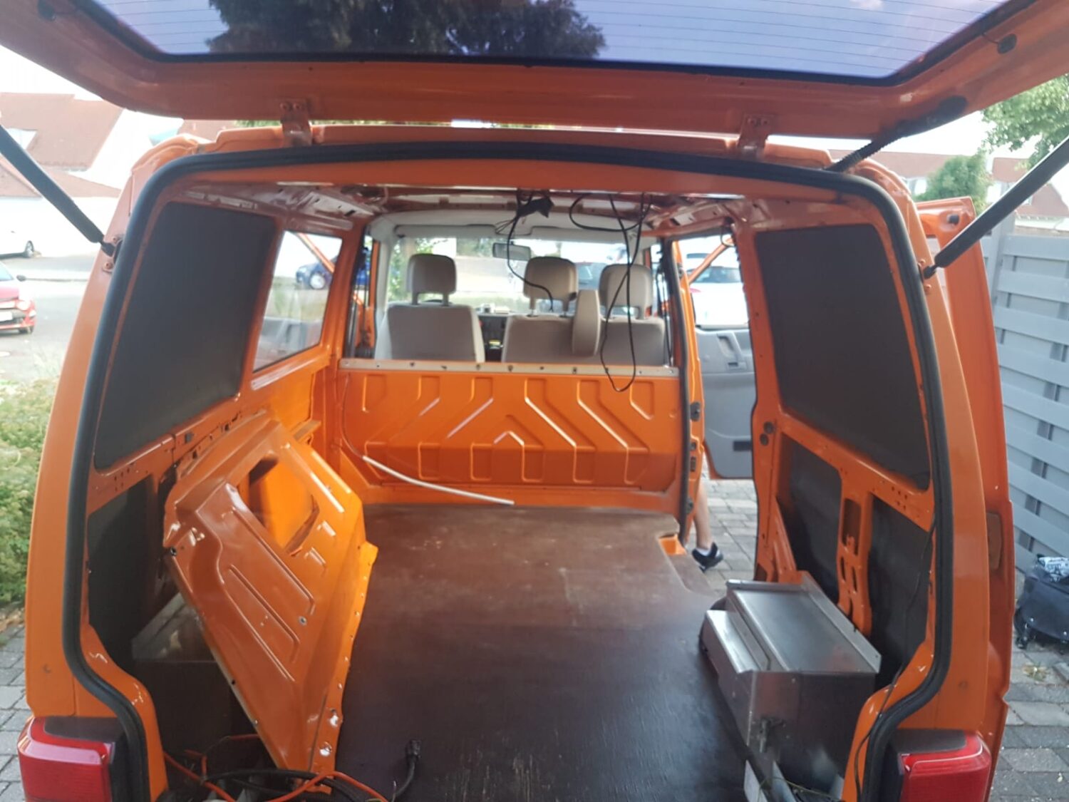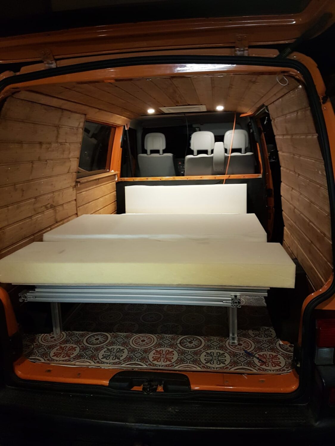 Der innen Ausbau (Küche, Bett, Dachfenster usw.) haben wir 2018 in drei Wochen erledigt. Über die Jahre sind dann einige Features hinzugekommen (Leiter+Dachterrasse, Solarpanel + Lichtanlage)