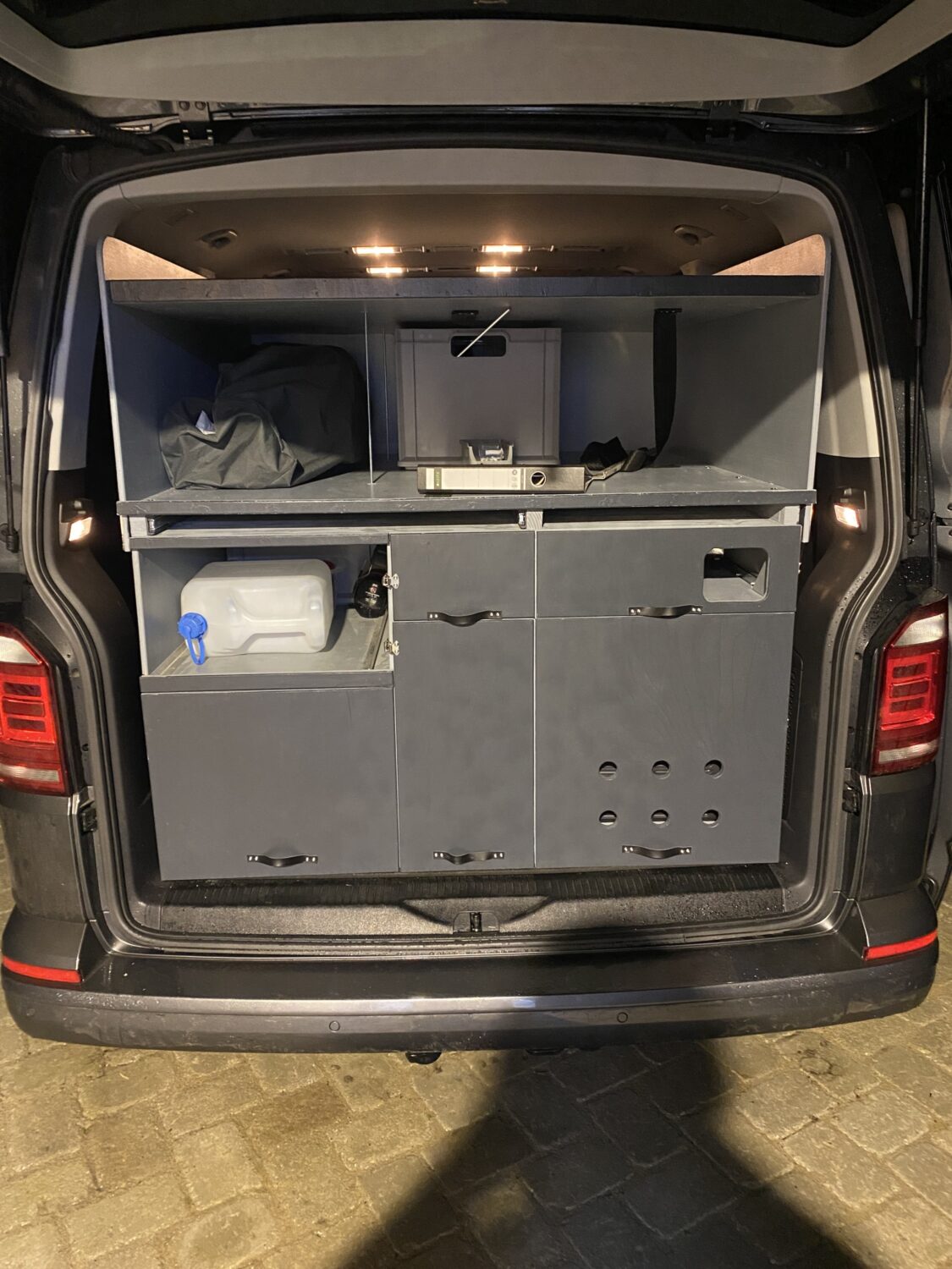 Der ââÂ¬à ¾grobe- Ausbau hat zusammen mit nem Kumpel ca. eine Woche gedauert. Das Feintuning wird wohl nie aufhören ;-) Eine Zweitbatterie und eine Standheizung haben wir auch nachgerüstet. Am besten gefallen tut uns, dass wir auf wenig Platz viel mitkriegen. Das wichtigste Feature jedoch ist und bleibt unser ikamper auf dem Dach. Dieses Zelt ermöglicht eigentlich erst das Reisen und schlafen zu viert.