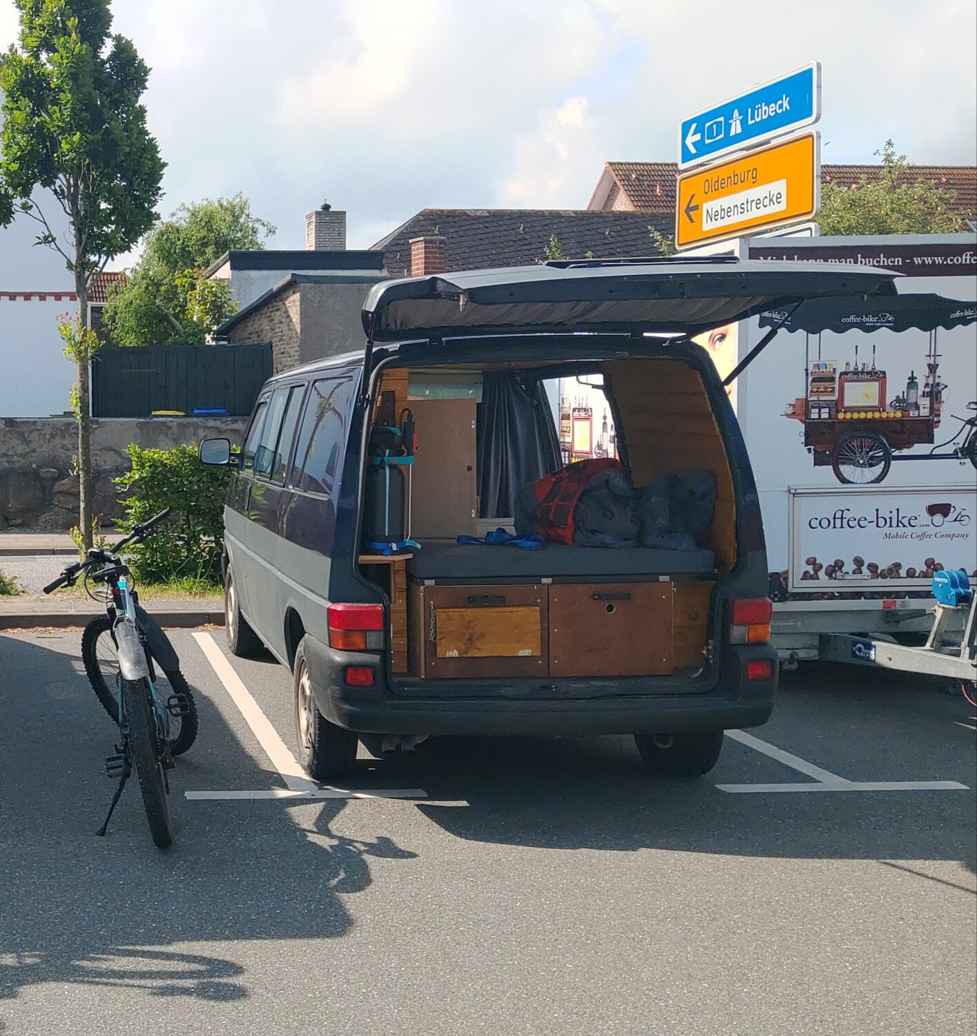 Hab meinen Bus (2.5tdi Baujahr 1997) seit Februar 2021. Hab ihn dann im Lockdown ausgebaut. Fertig wird er wohl nie, man findet immer was zum verbessern. Er besitzt eine Ausziehküche und eine Kühlbox im Heck. Dazu ist noch eine Spüle verbaut und eine Trockentrenntoilette. Zum schlafen gibt es ein selbstgebautes Rock and Roll Bett mit 1,20m x 1,95m Liegefläche drinne gibt es noch einen hochklappbaren Tisch der gleichzeitig die Elektrik abdeckt. Als weiteres hab ich noch ein Paulchen Fahrradträger für die Heckklappe auf dem aktuell eine Alubox verschraubt ist. (kann aber schnell gewechselt werden) Das war's ,,erstmal'' Gruß Otto und Mike