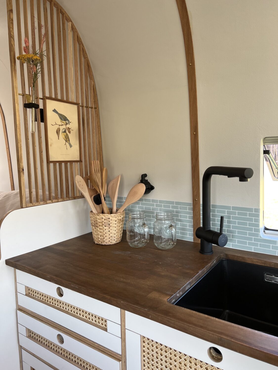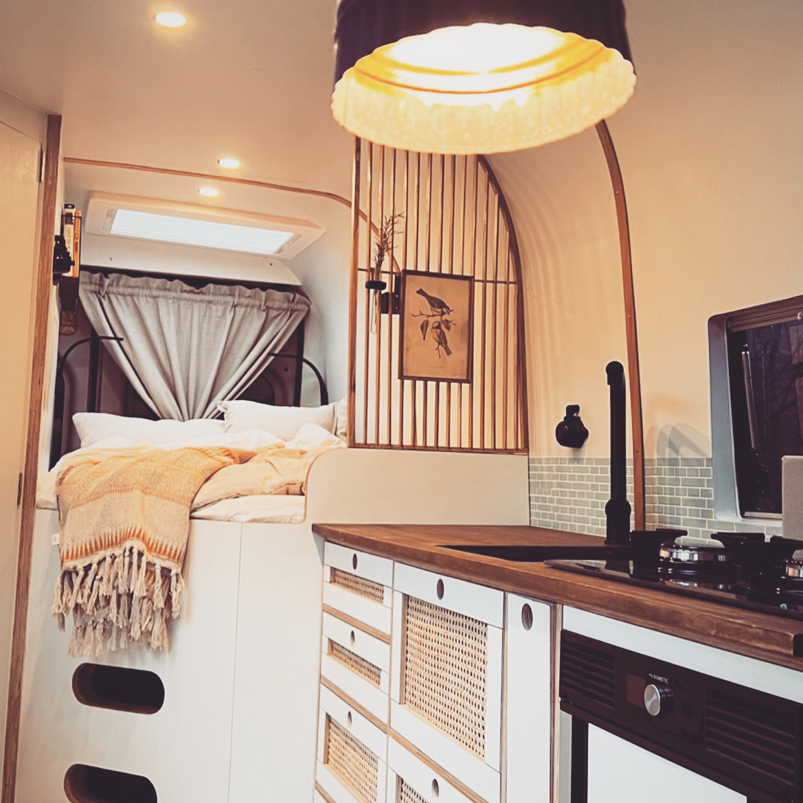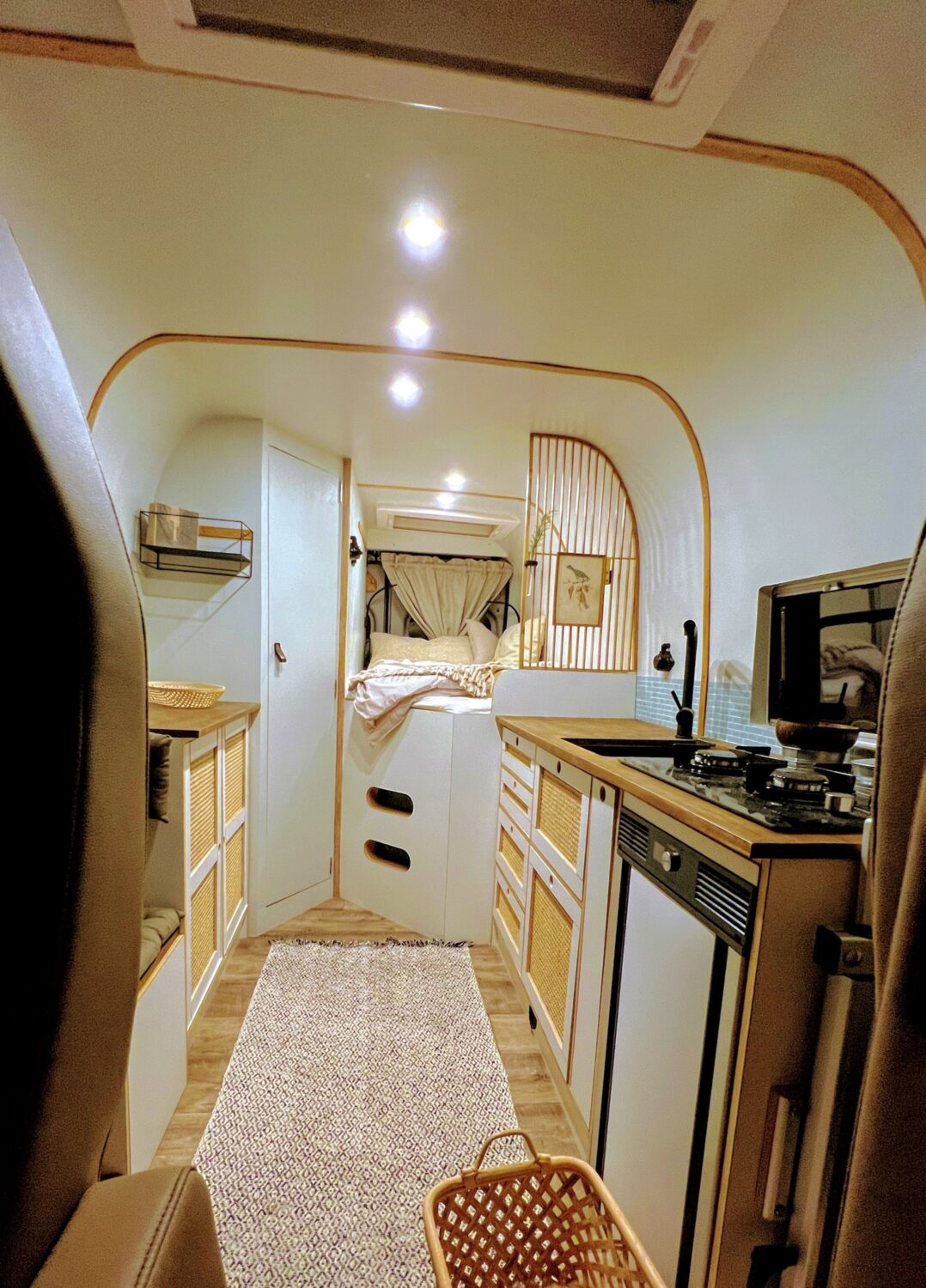 Als Familienprojekt während des ersten Lockdowns 2020 aufgesetzt. Wobei das eigentlich nur ein Vorwand war :) eigentlich hatte ich schon lange vor einen Van auszubauen. Warum? Ich wollte in erster Linie ein Unikat und wollte einen Van, der meinem Style entspricht, der keine hochglanzfurnierte Möbelfronten aufweist oder Chrom-blitzend um die Ecke kommt. Das ist nicht meins. Lange habe ich den Schritt nicht gewagt, einfach weil mir Dinge wie Bad/Dusche wichtig sind, ich aber nicht wusste, wie ich die bauen sollte. Mai 2020 habe ich mir gesagt "wuscht, leg einfach mal los". Hinsichtlich Strom gehe ich einen eher ungewöhnlichen Weg. Ich verzichte auf 230V, da alle meine Geräte mit 12V betrieben und oder geladen werden können (auch mein Laptop). Genauso verzichte ich auf Solarpanelen auf dem Dach. Statt dessen habe ich eine 240AH LiFo Batterie verbaut und Ladebooster. Für meine Art des Reisens ist das mehr als ausreichend. Für den Fall der Fälle verfüge ich über eine mobile Solarpanele die ich prall in die Sonne stellen kann, auch wenn ich mein Van im Schatten parke ;). Generell habe ich die gesamte Elektronik unter dem Fahrer bzw. Beifahrersitz. Ansonsten heize ich mit Gas, da die Maße einer Truma inkl. Warmwasserboiler besser in mein Raumkonzept passten. Mit 2 *11Kg Gas komme ich damit sehr weit.