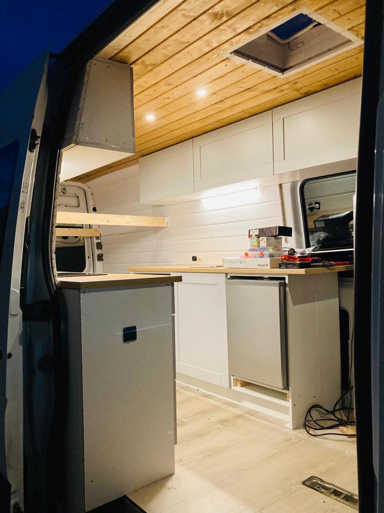 Wir haben ca. 8 Monate umgebaut. Wir Reisen mit 4 Personen, Zwei Kindern mit Eltern. Dusche haben wir nicht. Wir haben 300 Watt Solar. Kein Gas verbaut nur Strom. Kosten sind ca. 6000 Euro für den Umbau.