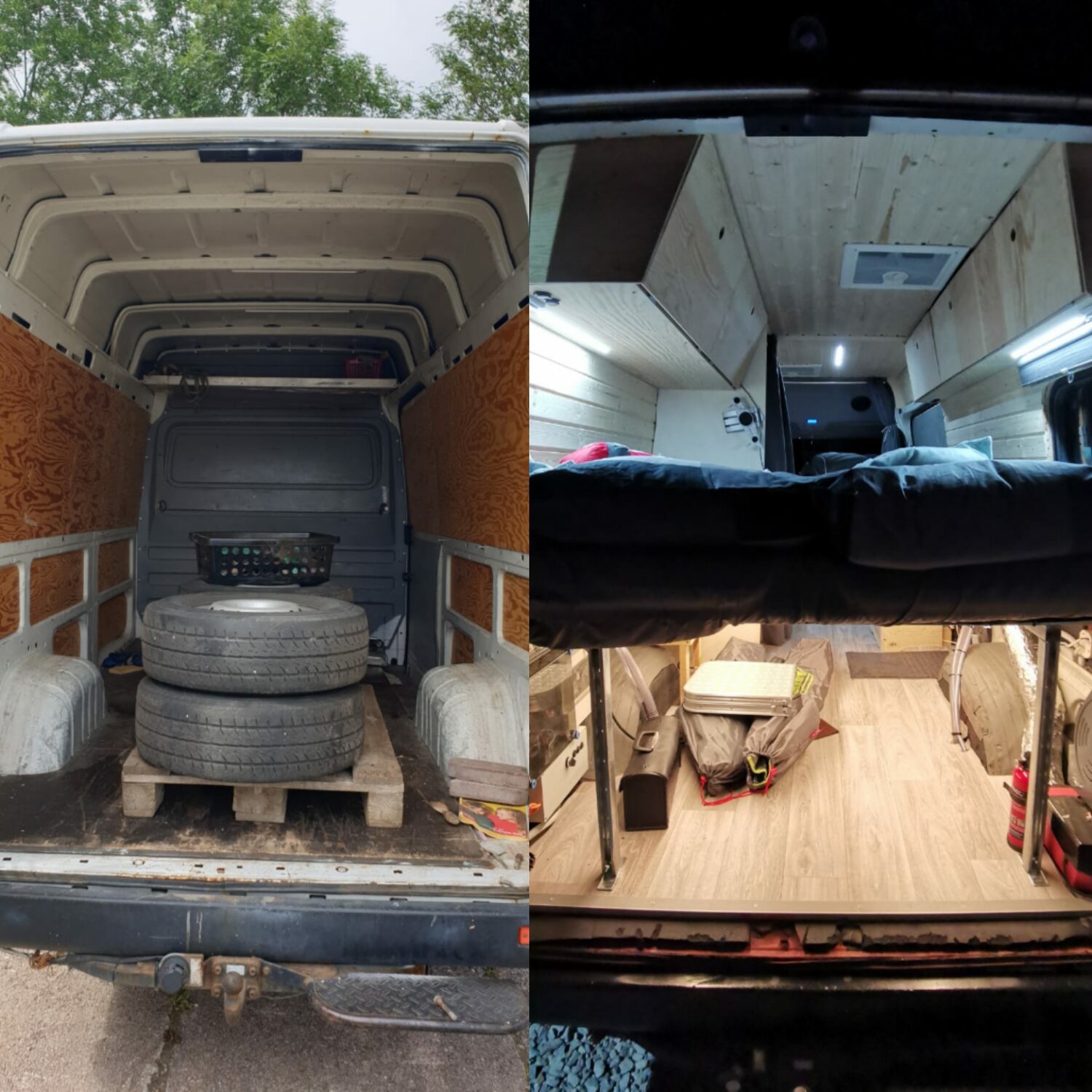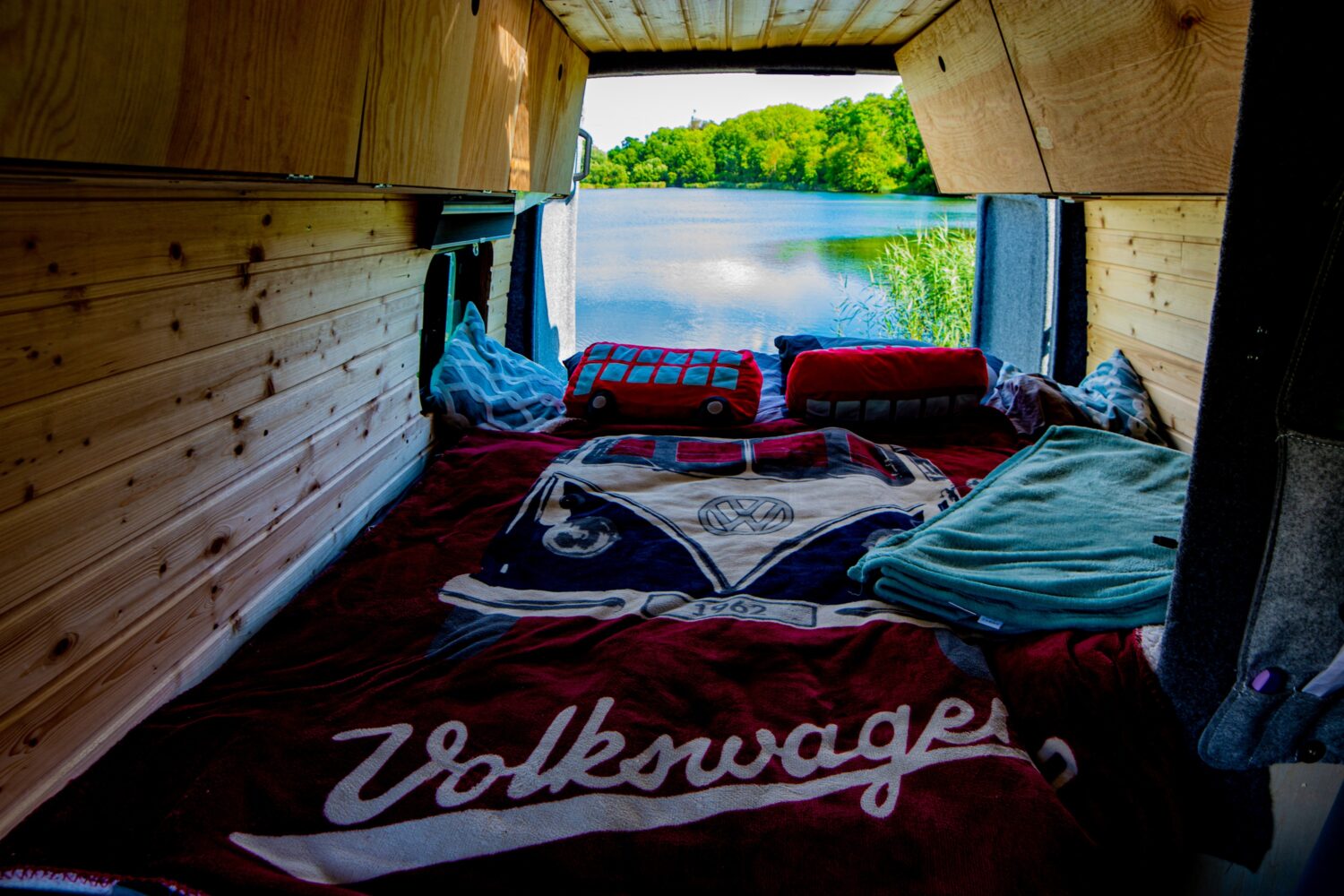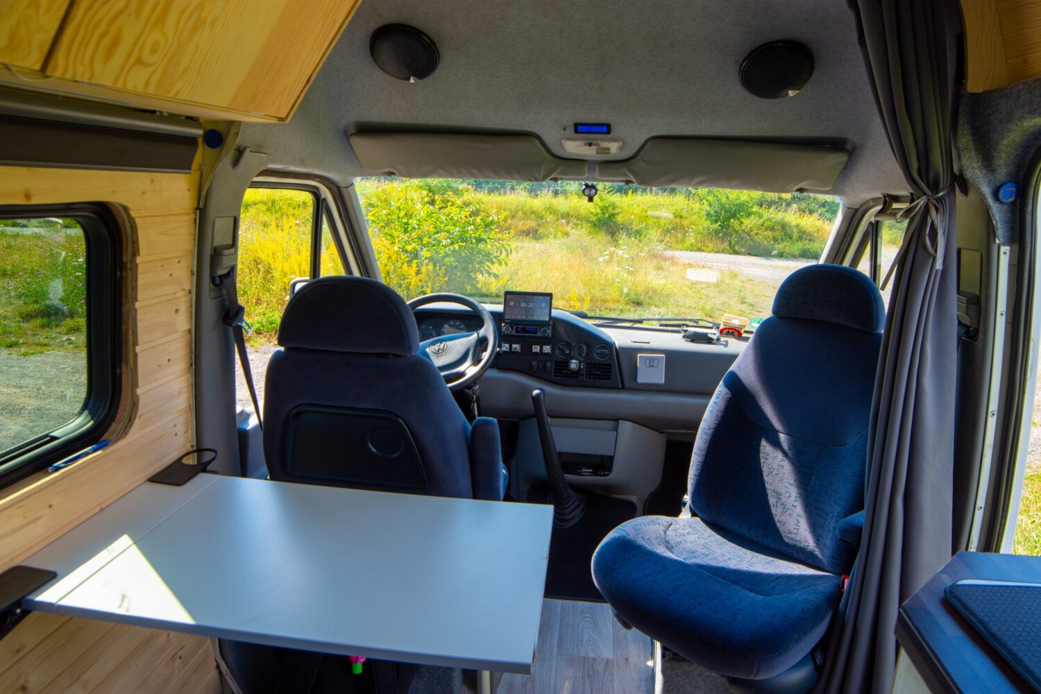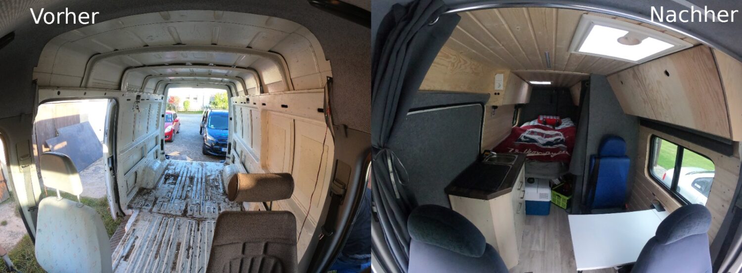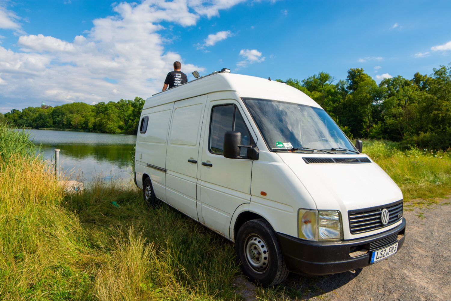 Wir haben das Auto im September '19 gekauft und über den Winter umgebaut. So vergingen genau 6 Monate bis zum TÜV Termin. Ich selbst habe die Steuerung mit einem Raspberry Pi gebaut. Man kann von (fast) überall das Licht ein- und ausschalten. Zwei Solarmodule liefern 200W für die zwei Aufbaubatterien, um uns autark zu halten. Wir haben zwei 33l Tanks für Frisch- und Abwasser eingebaut. So können wir auch in Städten alles nutzen. Wir haben einen "Dometic" -Kocher verbaut, um überall kochen zu können. Weiterhin haben wir einen selfmade Dachgepäckträger, um Zusatzscheinwerfer für Feldwege montieren zu können. Dieser besteht aus einem 30x30 ITEM Profil. Wir haben zwei Dachfenster, sowie zwei Schiebefenster montiert. Der LT hat jetzt auch eine Alarmanlage und eine Zentralverriegelung. Ein GPS-Modul zeigt uns immer, wo unser VAN steht. Eine Außendusche haben wir ebenfalls verbaut, damit wir auch mal autark duschen können. Der 2.8l Motor leistet 125PS und wurde auf Elektrolüfter umgebaut, um den Motor besser zu kühlen. Er hat Heckantrieb mit zuschaltbarer Differentialsperre. Wir haben einen Krankenwagensitz nachgerüstet, um auch zu dritt vereisen zu können. Bald lasten wir ihn auf, weil er echt ein bisschen schwer geworden ist. Wir reisen oft mit Fahrrädern oder mit Luftboot und Außenboardmotor. Als WC haben wir uns für einen PortaPotti entschieden. Den krönenden Abschluss bilden unsere T4 Businessline-Sitze, welche mit ihrer original verbauten Drehkonsole das gemütliche Essen im Van möglich machen.