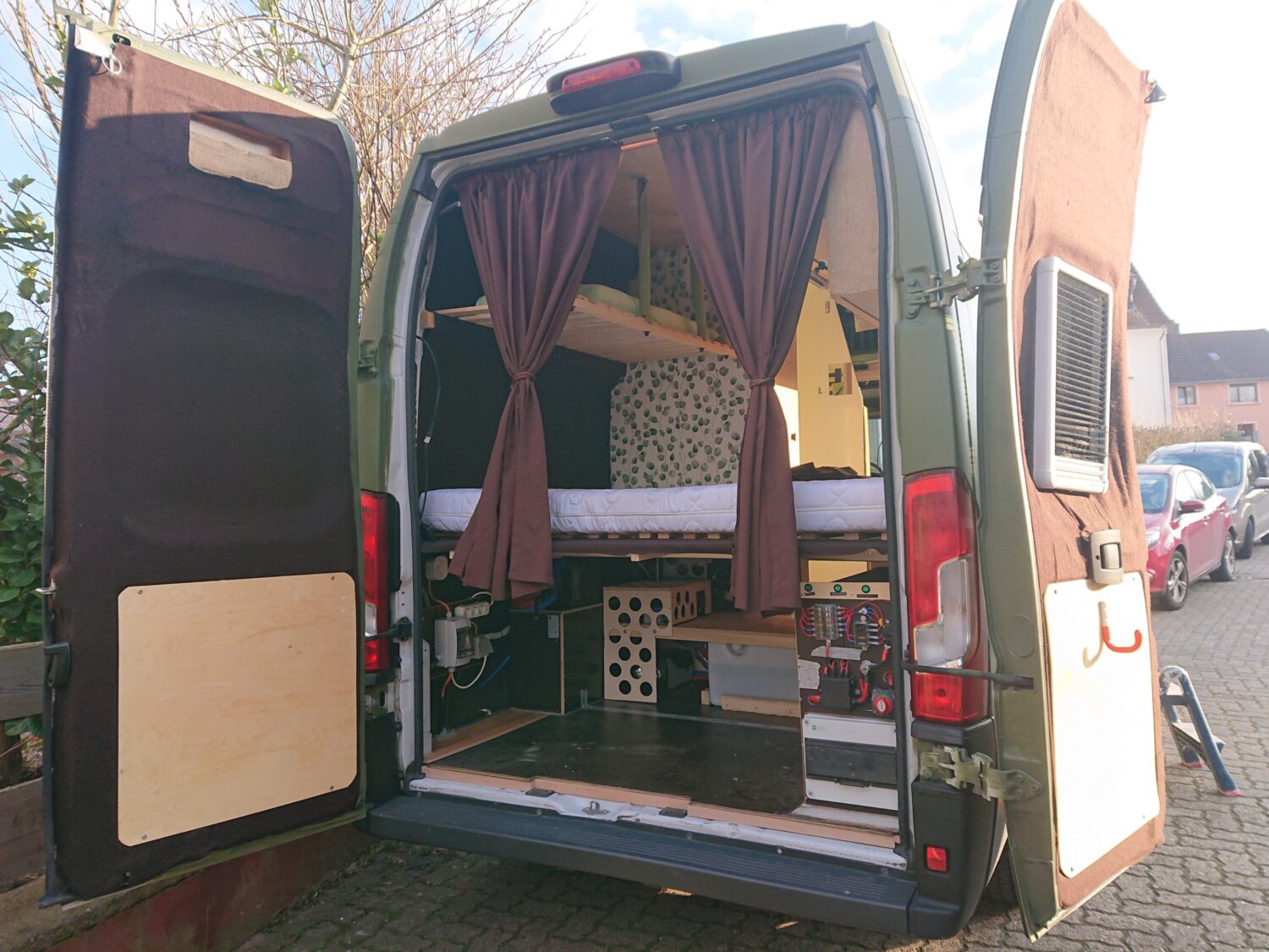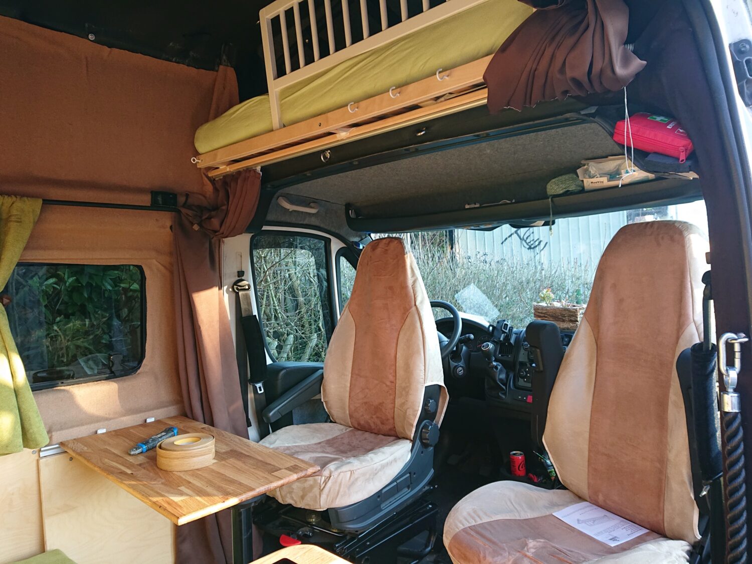 Wir haben Platz für zwei Erwachsene und zwei Kinder. Bis auf die Lackierung ist alles selber gebaut und konfiguriert. Es handelt sich um einen Straßenausbau mit vielleicht nicht immer den perfekten Mitteln. Wichtig war uns das er Wintertauglich ist und auch einen gewissen Komfort besitzt. -Dusche, Toilette und Warmwasser -Fußbode-Heizung und LTE Antenne -Gurtbock für hintere Sitzreihe und drehbare Einzelsitze vorn -zwei Dieselheizungen und keine Gasanlage -200 Äh Batterie und 400 W peak -Landstrom und Mikrowelle -Gaskartuschenkocher und Omnia -als Wohnmobil mit 4 Sitzen zugelassen ...viel Arbeit und alles nicht ganz günstig...