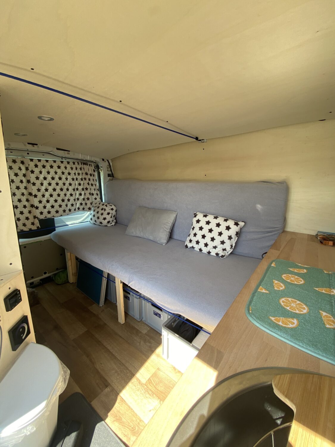 Hey 👋🏼 Mein Name Ist Tobi und ich bin 24 Jahre alt. Ich habe mir letztes Jahr im Sommer mein Vito gekauft. Er war ein leerer Transporter. Ich habe ihn in Eigenleistung zu einem gemütlichen Camper ausgebaut. Ich habe alles was ich zum Reisen brauche an Bord. Ich habe eine Küchenzeile mit Waschbecken und einem Gaskocher. Oben habe ich eine große Arbeitsfläche da ich den Kocher in eine Schublade gebaut habe. Unten in der Küche befindet sich mein Vorratsschrank und darunter sitzt die Elektrik. Ich habe einen Lasebooster für während der Fahrt und seit neustem auch eine Solaranlage auf dem Dach ;). Für mich so vollkommen ausreichend damit ich autark stehen kann. Seitlich habe ich ein Bett gebaut welches ich ausziehen kann. Gegenüber befindet sich meine Kühlbox. Super praktische Position meiner Meinung nach, da ich super Einkäufe von hinten einladen kann. Vor der Kühlbox befindet sich mein Kleiderschrank. Unter der Kühlbox befindet sich meine Standheizung. Stauraum befindet sich unter dem Bett. Fertig bin ich noch nicht ganz mit dem Ausbau aber wer selber ausbaut kennt das „Problem- mit dem nie fertig werden. Ich freue mich auf eine coole lockere Community.