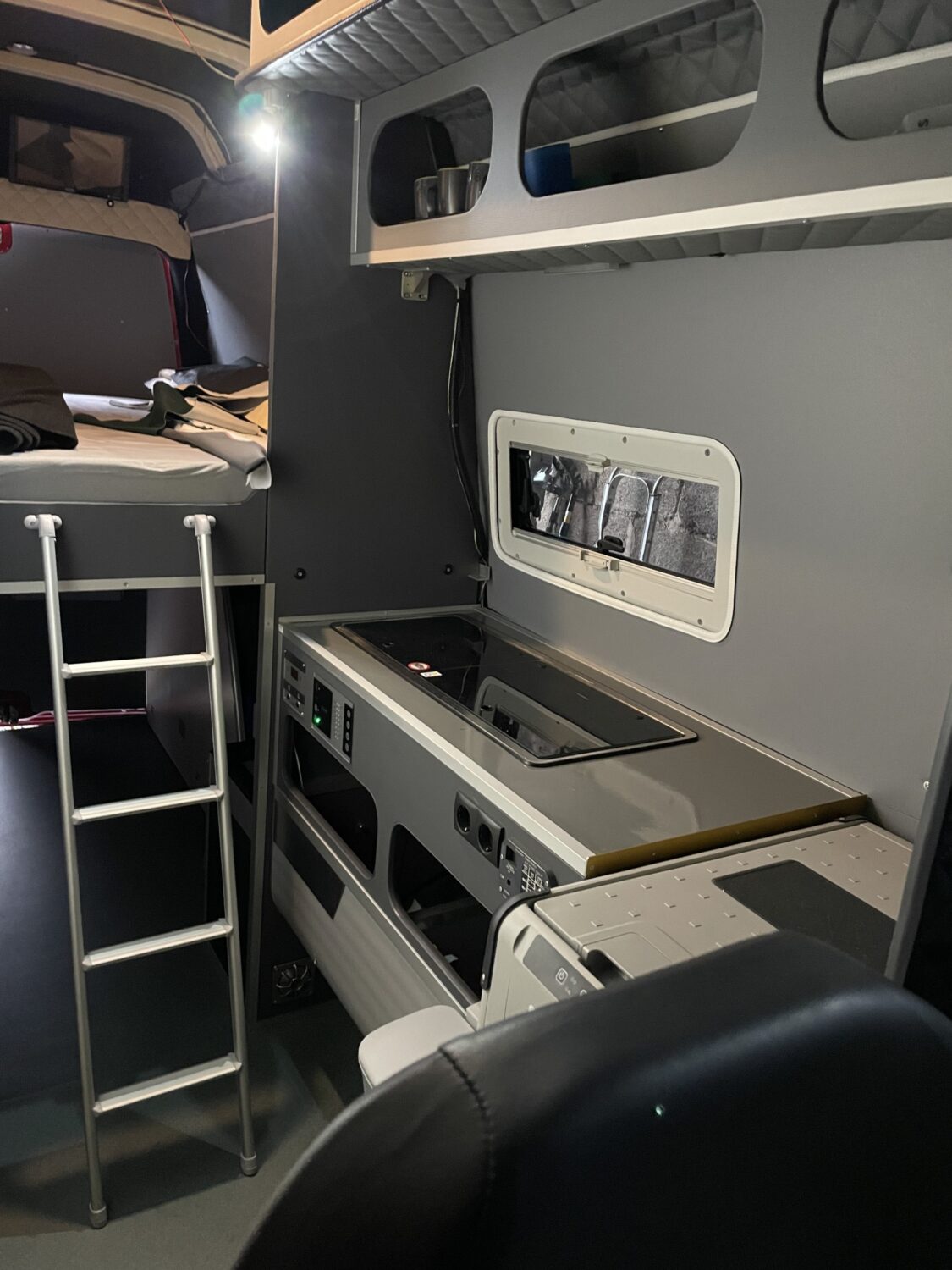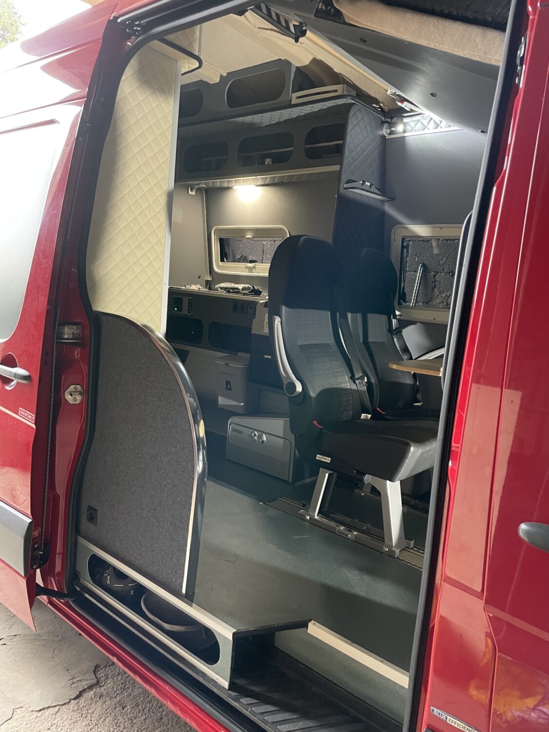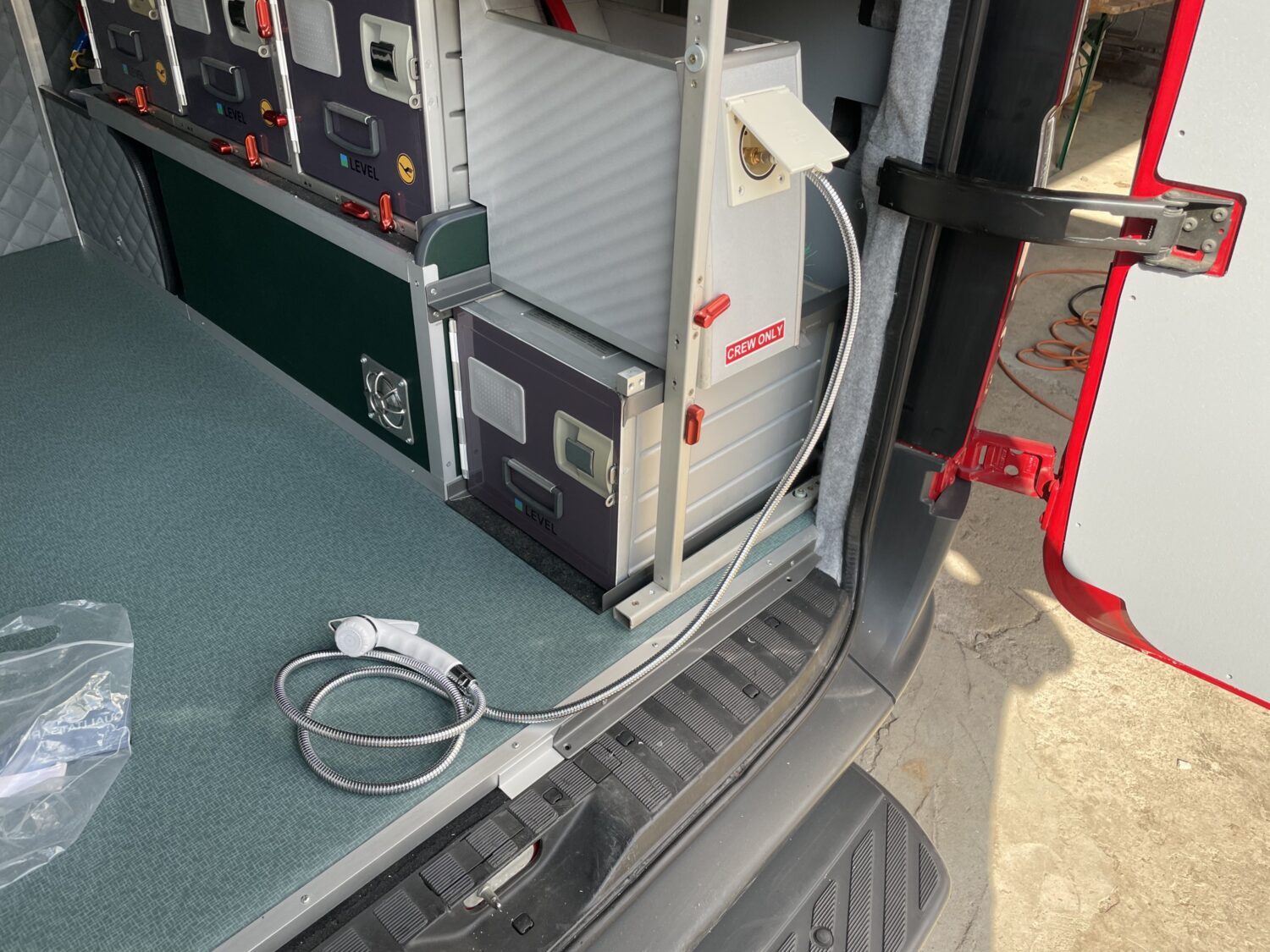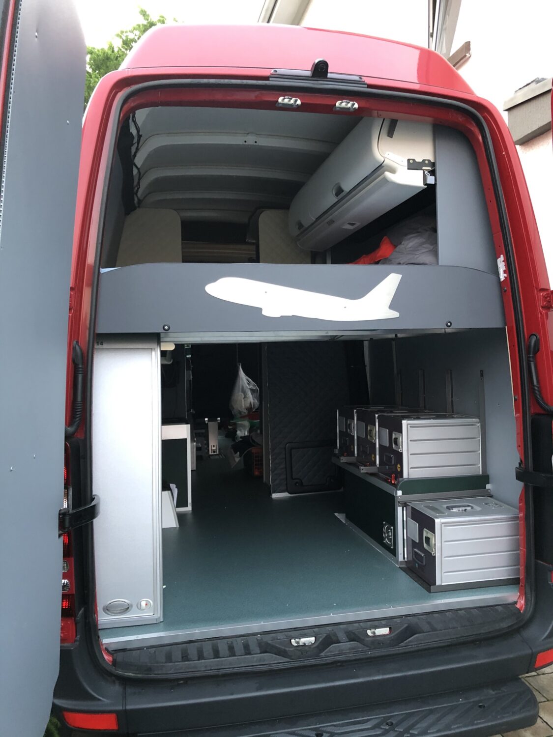 Der XXL Sprinter ist mein dritter Ausbau , vorher habe ich schon 2 Postkoffer von DHL ausgebaut. Das Fahrzeug ist für 2 Kinder und 2 Erwachsene gedacht, obwohl der Sprinter sehr groß wirkt, wird es schon ziemlich eng😉. Für den Ausbau habe ich mir von einer Firma Ausstattungsteile und Möbel vom Flugzeughersteller Boeing und Airbus gekauft, diese umgearbeitet und mit in den Ausbau intrigiert. Ein paar Sachen muss ich noch fertig machen, ansonsten geht es jetzt damit auf Reisen .
