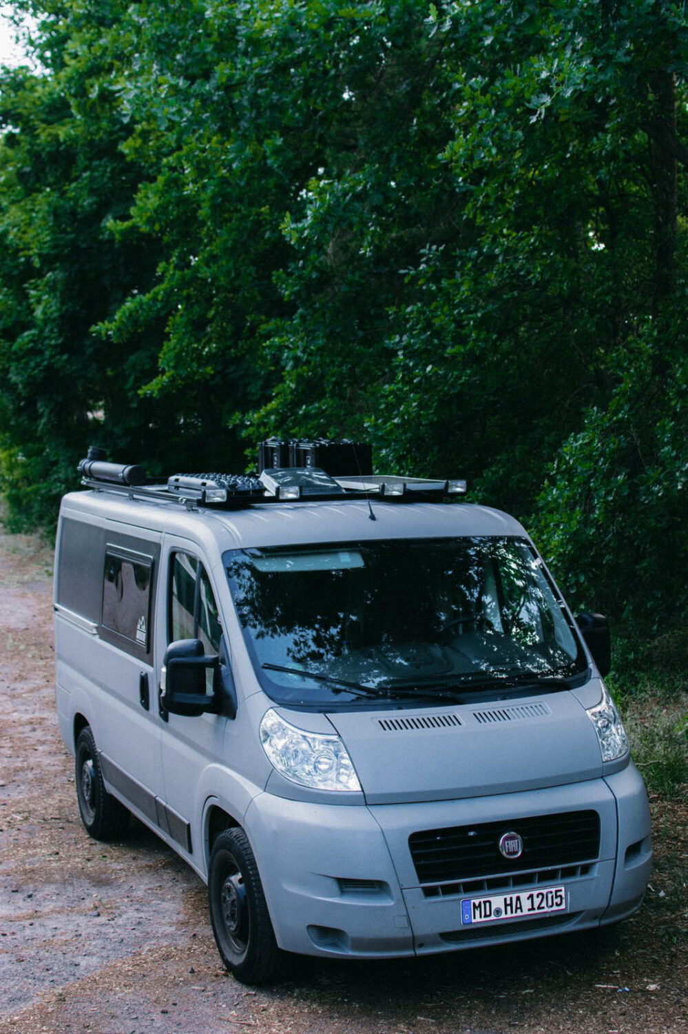 Der vollständige Ausbau zog sich etwa 2 Jahre hin bis zum jetzigen Zeitpunkt. Angefangen haben wir mit dem Innenausbau im Winter 2020. Unser Ziel war, bis zum Sommer fertig zu sein, sodass wir verreisen konnten. Im Winter 2021 entschieden wir uns einige optische Dinge zu verändern. Wir haben den Van mit Mipa Protektor in grau lackiert und dazu schwarz foliert. Ein Dachträger aus Aluprofilen kam außerdem hinzu. Der Fiat wurde dann mit Zusatzfedern höher gelegt, um den Offroad-Look abzurunden. Am Ende folgten dann die technischen Spielereien: Zusatzscheinwerfer, Solaranlage, Kühlbox. Nun können wir sagen DER VAN IST FERTIG...naja vlt kommen dann im Winter noch BF Goodrich Reifen, aber dann ist wirklich fertig :D Die Kosten halten sich relativ gering, da wirklich ALLES selbst gemacht wurde. 15000 € haben wir inklusive Fahrzeug in das Projekt gesteckt. Alles in Allem sind wir sehr stolz, dass wir zu zweit ( und mit Hilfe von Freunden) wirklich alles selbst gebaut haben.