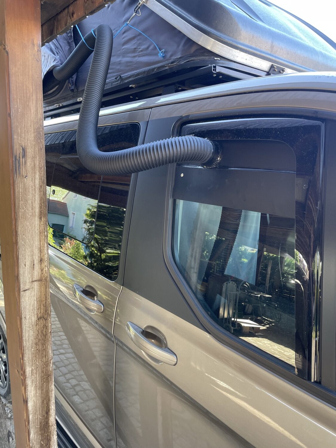 Wir reisen zu fünft. Mit Dachzelt und Campingbox im Fahrzeug wird es manchmal zwar recht kuschelig, Vielleicht ist es aber auch genau das, was wir an dieser Art zu Reise so lieben. Wir haben in unserer Campinngbox eine ausziehbare Küche verbaut. Fenstertaschen bieten guten Stauraum. Und die Autotherm2D sorgt für Wärme oder eben auch mal trockene Sachen. Damit wir im Innenraum auch mal Platz haben um uns umzuziehen oder zur. Not drinnen zu essen, haben wir. Dem Beifahhrersitz. Noch eine Drehkonsole gegönnt.