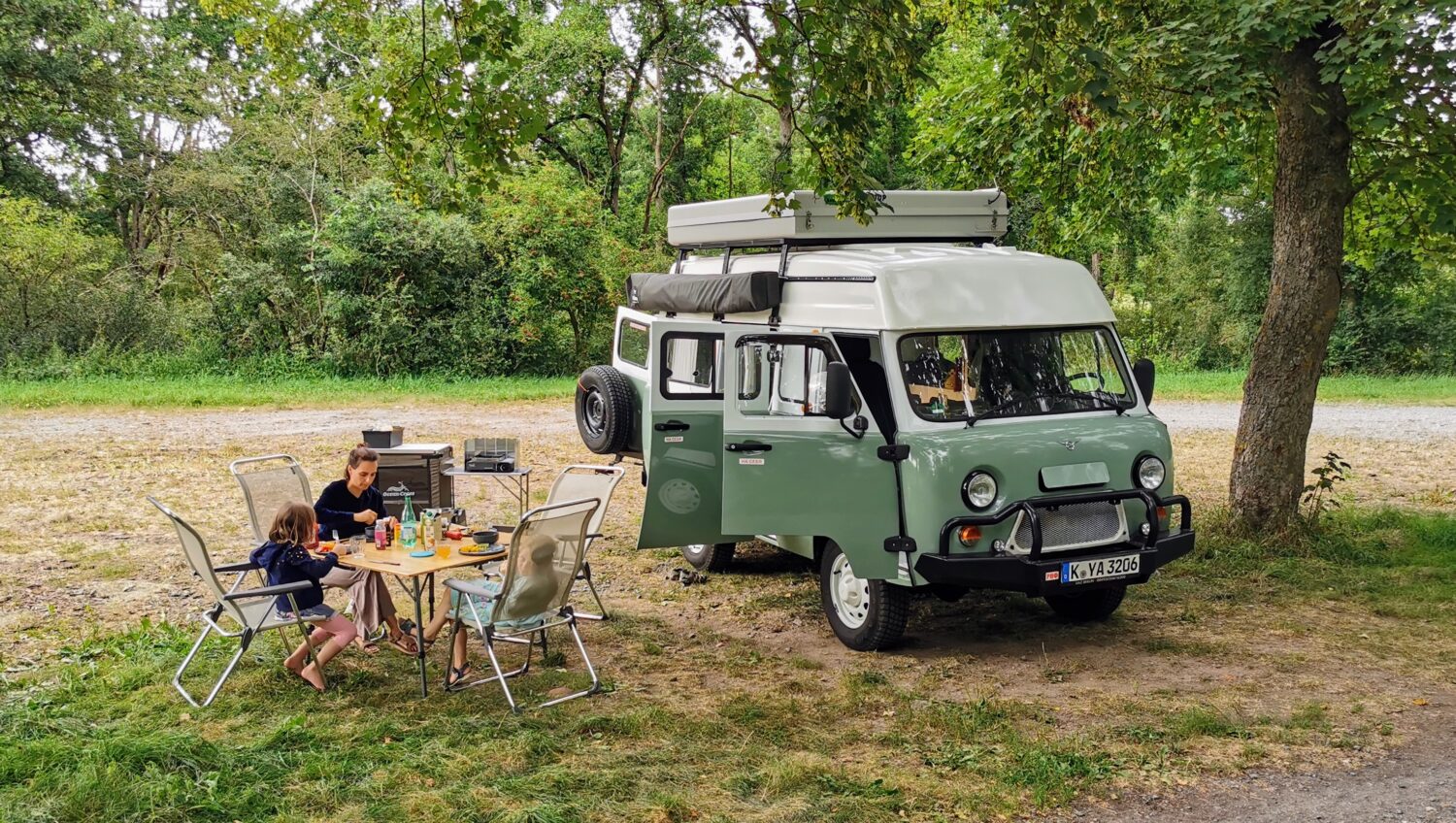 "just in process" Wir bauen unseren Bus seit nun gut 1,5 Jahren aus und um. Basis ist ein russischer hochgeländefähiger Bus mit 7 Sitzplätzen, Hochdach, zuschaltbarem Allrad + Untersetzung und elektrischer Diff.-Sperre hinten. Der Bus ist Bj. 2020 und wird seit 1958 gebaut. Ziel ist ein Setup für max. 5Pers. mit hoher Autarkie und Flexibilität, schneller Auf- und Abbau, ausschließlichen Schlafplätzen in und auf dem Bus & anteilhafter Erhalt der Offroadeigenschaft. Alle Eintragungspflichtigen Umbauten haben wir von Fachbetrieben durchführen lassen. Zu Beginn flogen alle Sitze im Fahrgastraum raus und eine 3er Schnierle SL3 Schlaf-Sitzbank auf Schienen wurde verbaut (Einzelgutachten). Verstärkte Stoßstangen Vo. & Hi.+RR-Halter ersetzen die originalen Stoßstangen aus Blech. Die Spur wurde um 10cm verbreitert. An die Position des RR unter dem Heck wurde ein 50L KW-Tank verbaut. Hinter dem Beifahrersitz befindet sich ein 30L WW-Tank, der über das Kühlwasser oder 230V betrieben werden kann. Eine 90Ah LiFePO4 dient als Speicher für den Strom aus 2x160W PV (Dachzelt, Reihenschaltung), Ladebooster und Landstrom. Der Möbelausbau (Queenply) ist an sämtlichen Verbindungen zum Fahrzeug durch Gummi-Hohlpuffer gelagert und gleicht mögliche Spannungen und Verschränkungen der Karosserie aus. Eine Selbsttragende 270Grad Markise deckt die rechte Fahrzeugseite + Heck ab und bietet ohne Seitenwände 12qm zusätzlichen Aktionsraum bei Sonne und Regen. Das Metallspriegelsystem des GFK-Hochdachs haben wir verstärkt, die Airlineschienen, seitlich und oben auf dem Hochdach, mit diesem verschraubt und den individuell angefertigten Dachträger zusätzlich an den Airlineschienen befestigt. Dadurch haben wir eine ausreichend stabile Grundlage für die Aufnahme des 95Kg schweren elektrischen Dachzelts geschaffen. Die Steuerung des Dachzelts haben wir nach innen verlegt. Für die Frischluftansaugung der Standheizung wie auch den notwendigen Luftaustausch für die Nacht haben wir Lüftungsbleche anfertigen lassen und hinten li+re in die Karosserie eingesetzt. Klima, Möbelausbau, Anpassung des Fahrwerks, finales 12V Konzept und Kühlwasserheizung für den Fahrgastraum stehen noch an. "just in Process"