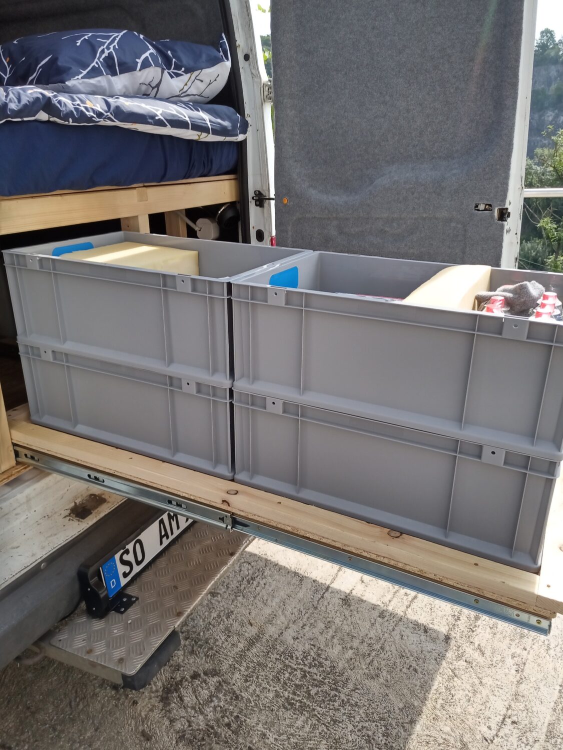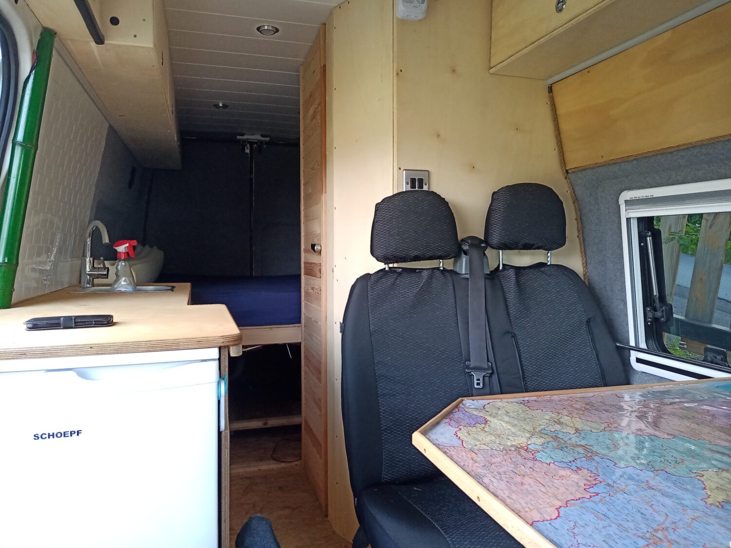 Ich habe fast 2 Jahre daran ausgebaut. Festes Bett hinten 185 x 160cm quer, Nasszelle mit Kassettentoilette, Sitzbank, drehbare Fahrer-Beifahrersitze, Kompressorkühlschrank, 400W Solar, 200Ah Lifepo4, Warmwasserboiler, Standheizung mit FB. 150KG Vollauszug im Heck, 2x80W Fernstrahler, 2 Heckkameras, Innenspiegel mit Dashcam, 2DIN-Radio uvm. Materialkosten inkl. Fahrzeugkauf etwa 15000€